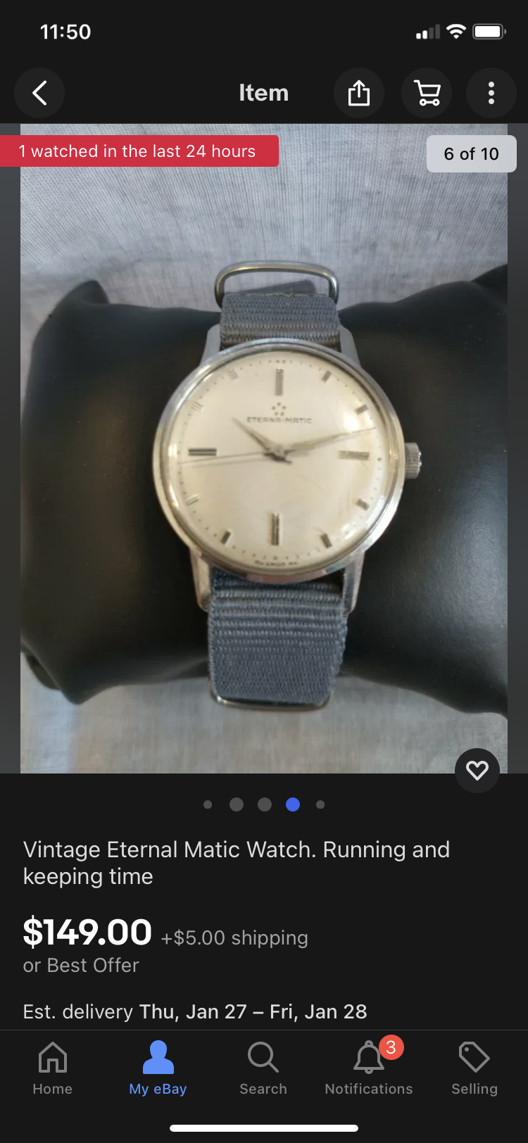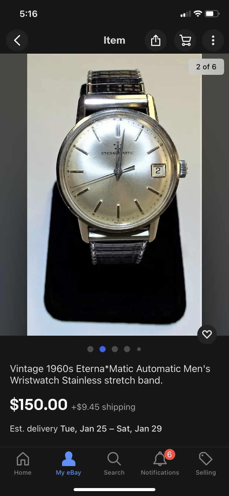 Another little stainless Eterna at 32mm for $150. Pics are shit but dial may be flawless and case/crystal should clean up easily. The lume looks bright yellow which is always the canary in the coal mine. Has make offer