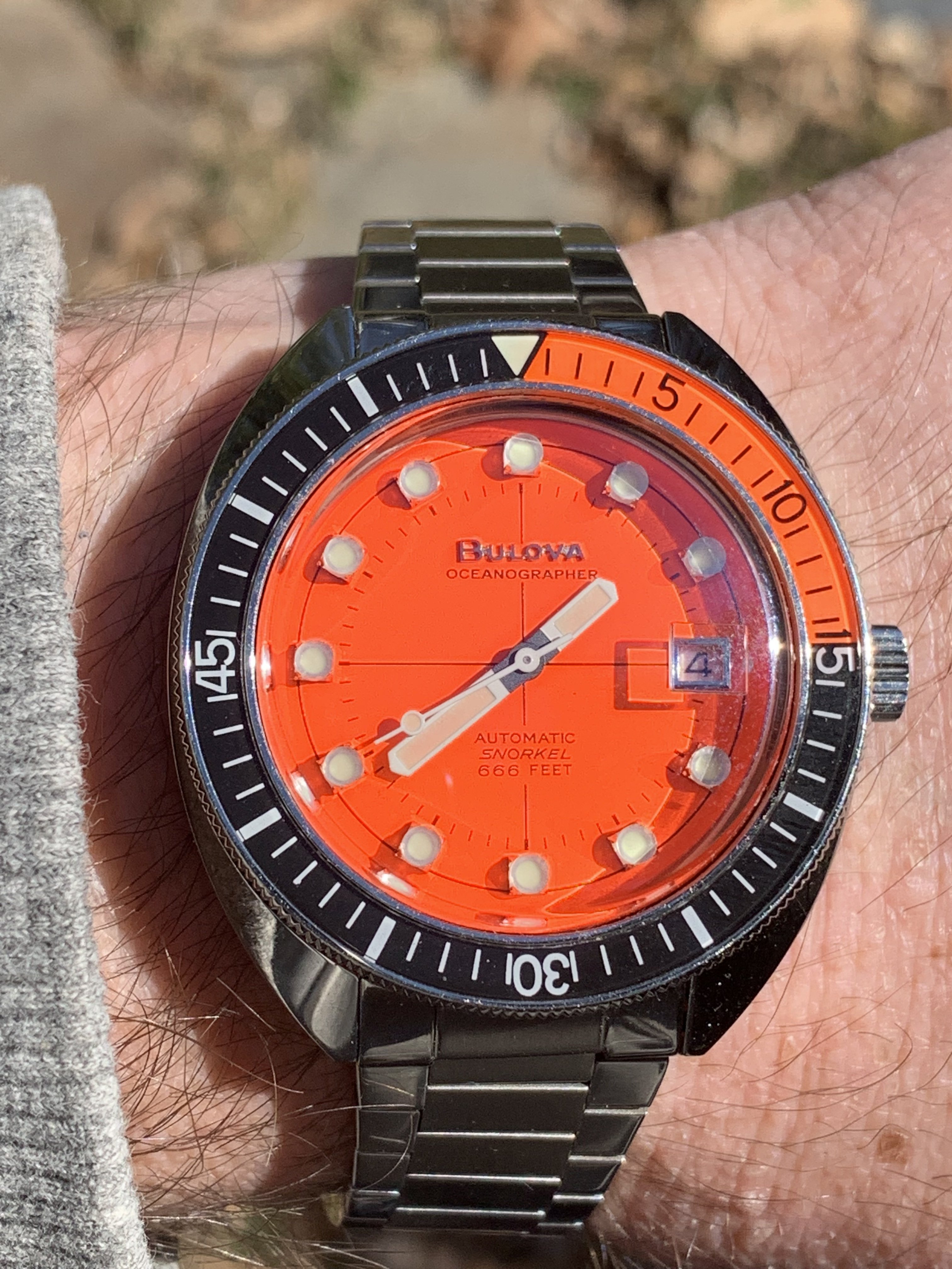 If you dig the new Bulova 666 reissue in orange, then here’s one for ya. Comes with a Strapcode bracelet which adds value to the package. Has make offer so may take less.