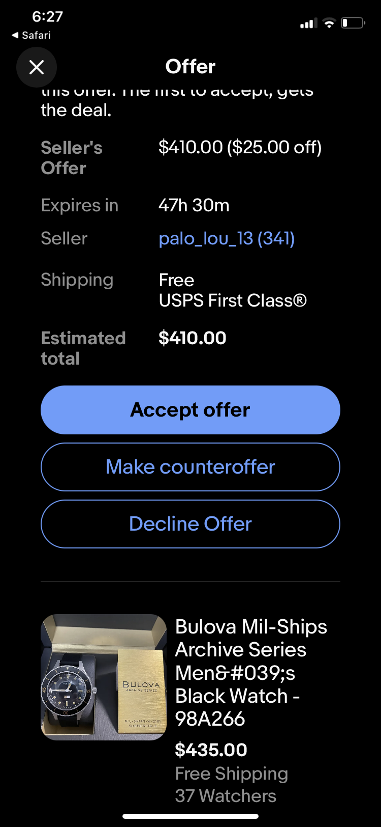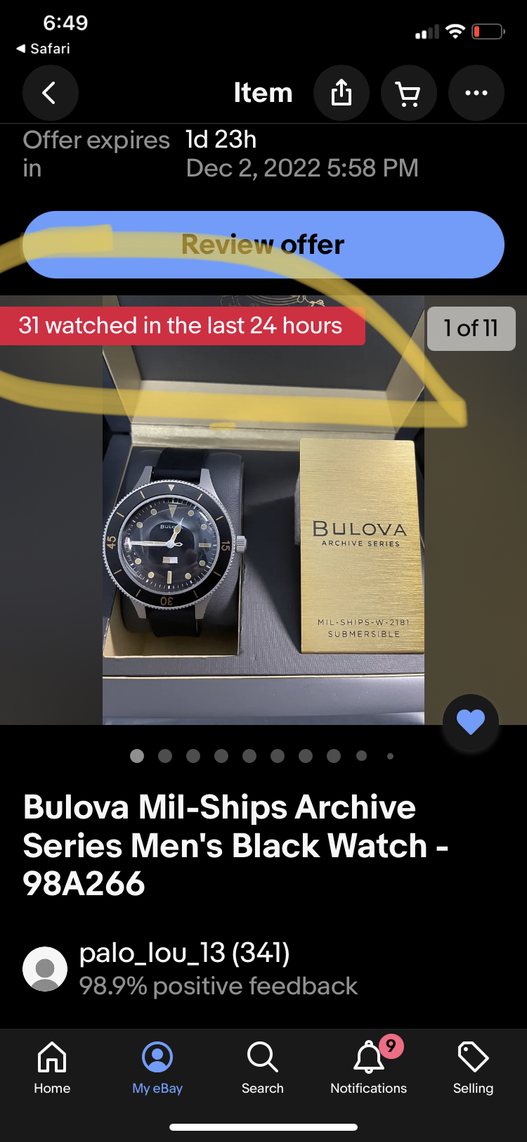 ·Another Bulova Milships, this one $15 less than the last (which is gone).