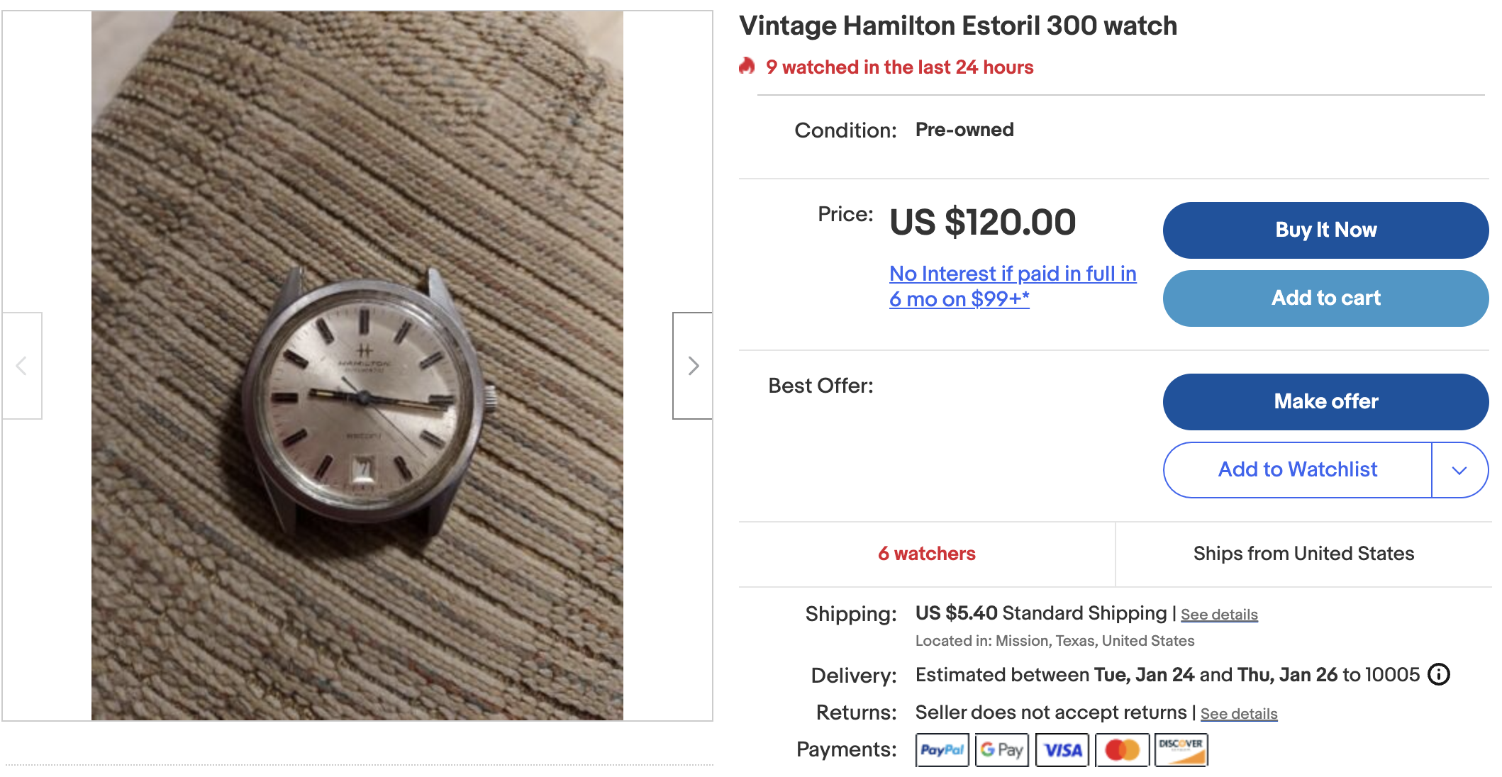 ·Nice little Hammy for the money (offers accepted too). All steel and case should be 35mm. Needs a new crystal and a nice strap but this should clean up real nice.