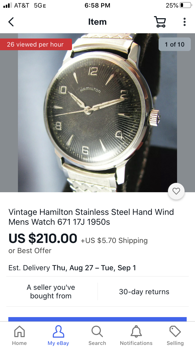 Lovely multi-textured dialed Wittnauer. Seller says freshly serviced- consider he shows a pic of it in pieces, it would have been silly not to.