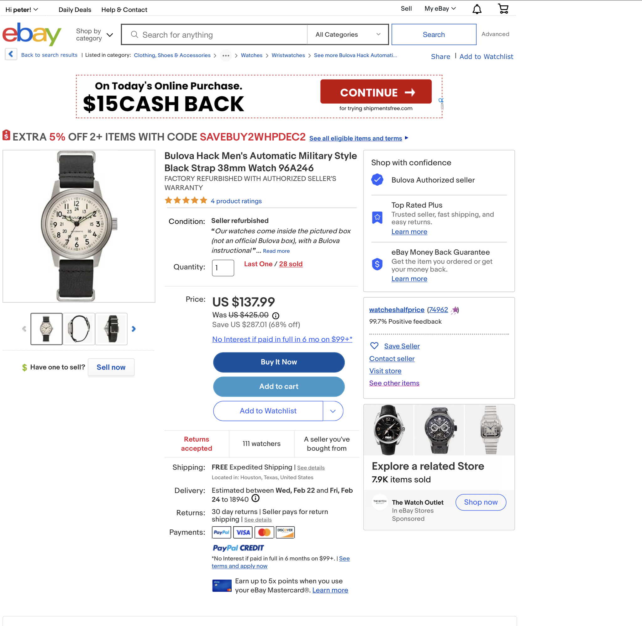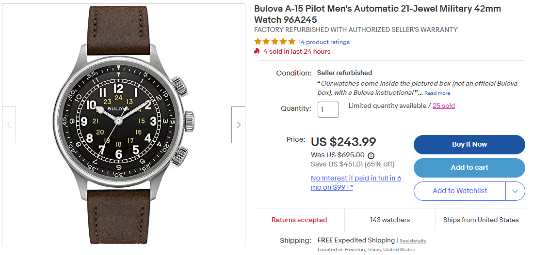 They must have bulk purchased all returned Bulovas from a department store chain. I can't think of another way of having this many refurbished watches of the same model. I might get the pilot watch: