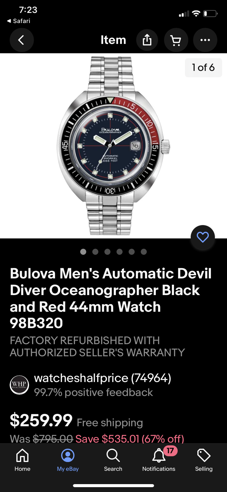 BIN $170 and accepts offers, messaged seller diameter 34mm excluding crown