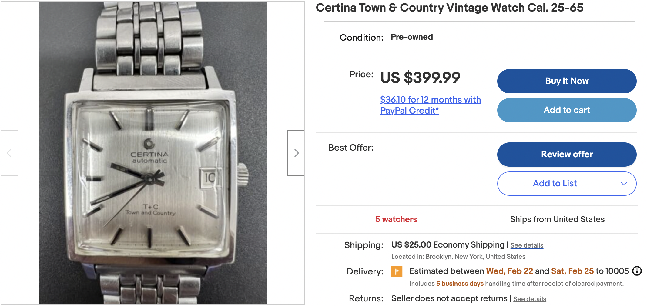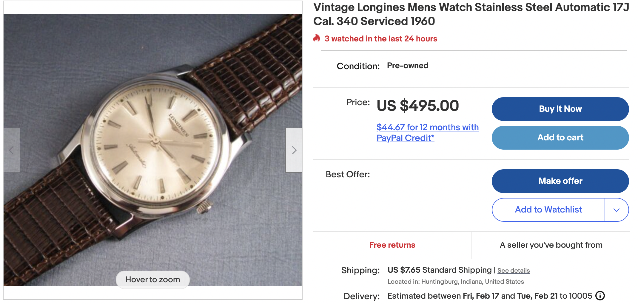Sharp Longines, very clean all around with original buckle, serviced, from a solid seller. Accepts offers, so could be a nice pick-up.