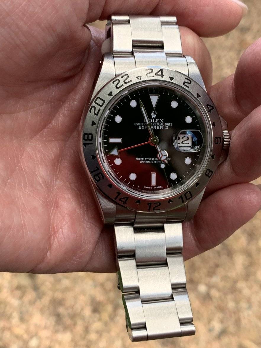 Arrowhead pie-pan meets Polerouter. I had one like this once upon a time. Small at around 32mm but pops on the wrist. It may have the USA marked automatic as well.