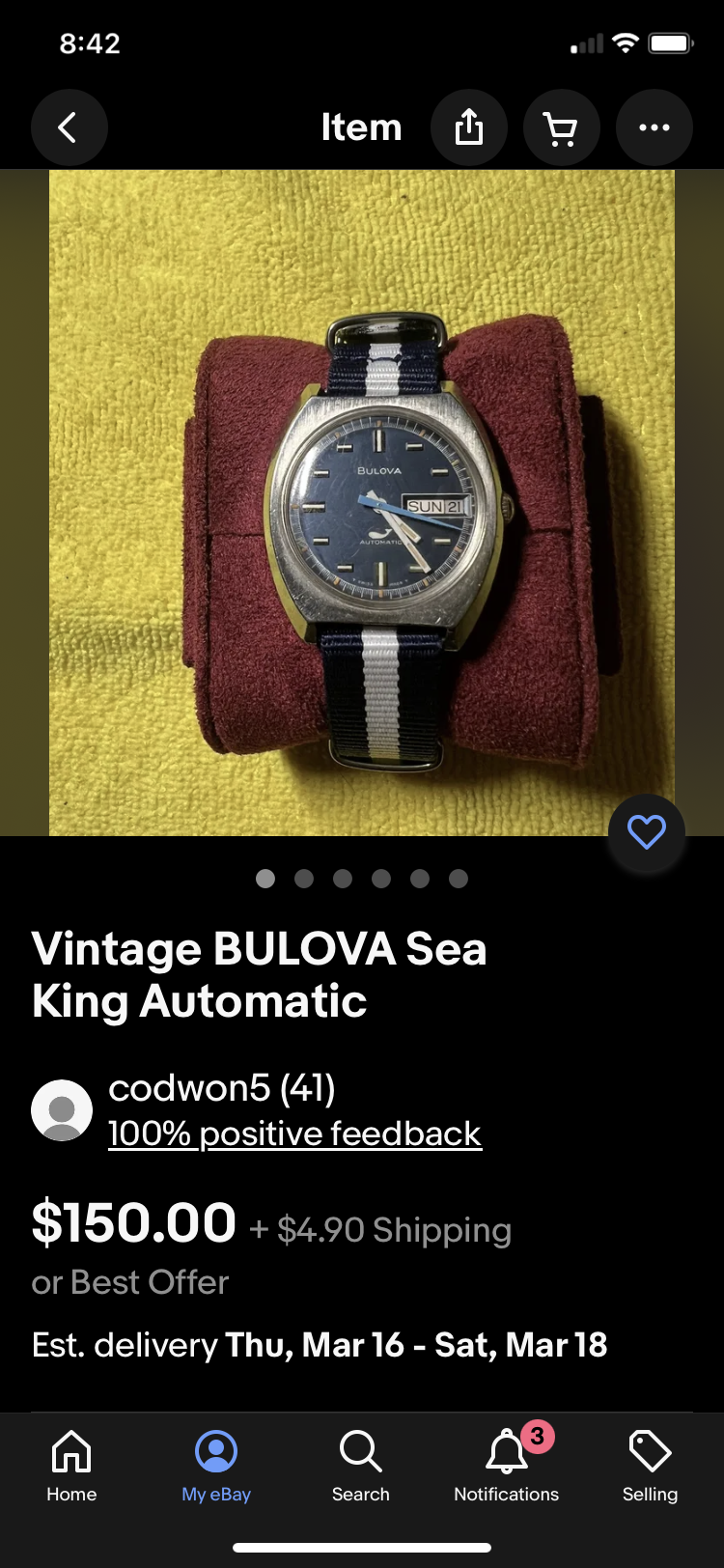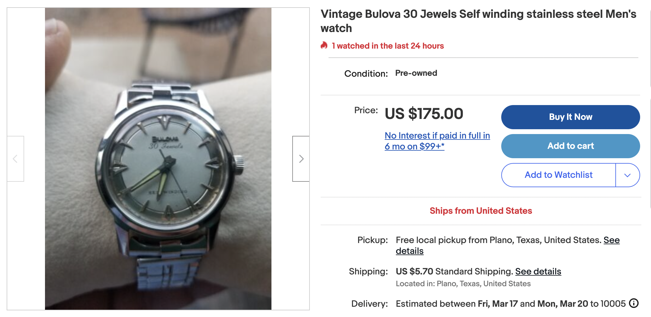 Cute looking all stainless Bulova, reminiscent of a pie-pie Connie with those arrowhead markers. Seller listed as manual winding, but it's definitely an automatic movement.