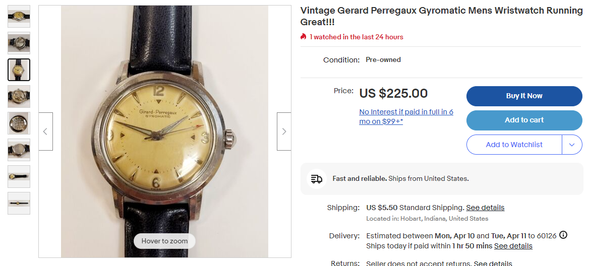 33.5mm Girard-Perregaux Gyromatic for $225, I would assume it hasn't been serviced for a long time: