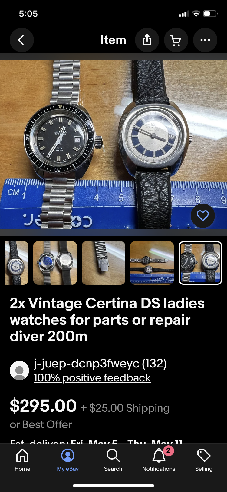 A fixer-upper special for any Certina fan- a ladies DS 200m in original NSA bracelet and a cushioned case bullseye DS. Neither work but if you are small wristed and into vintage divers, or have a full size 200m and share a life with a small wristed person who would love a vintage diver- this is about as good as they get.