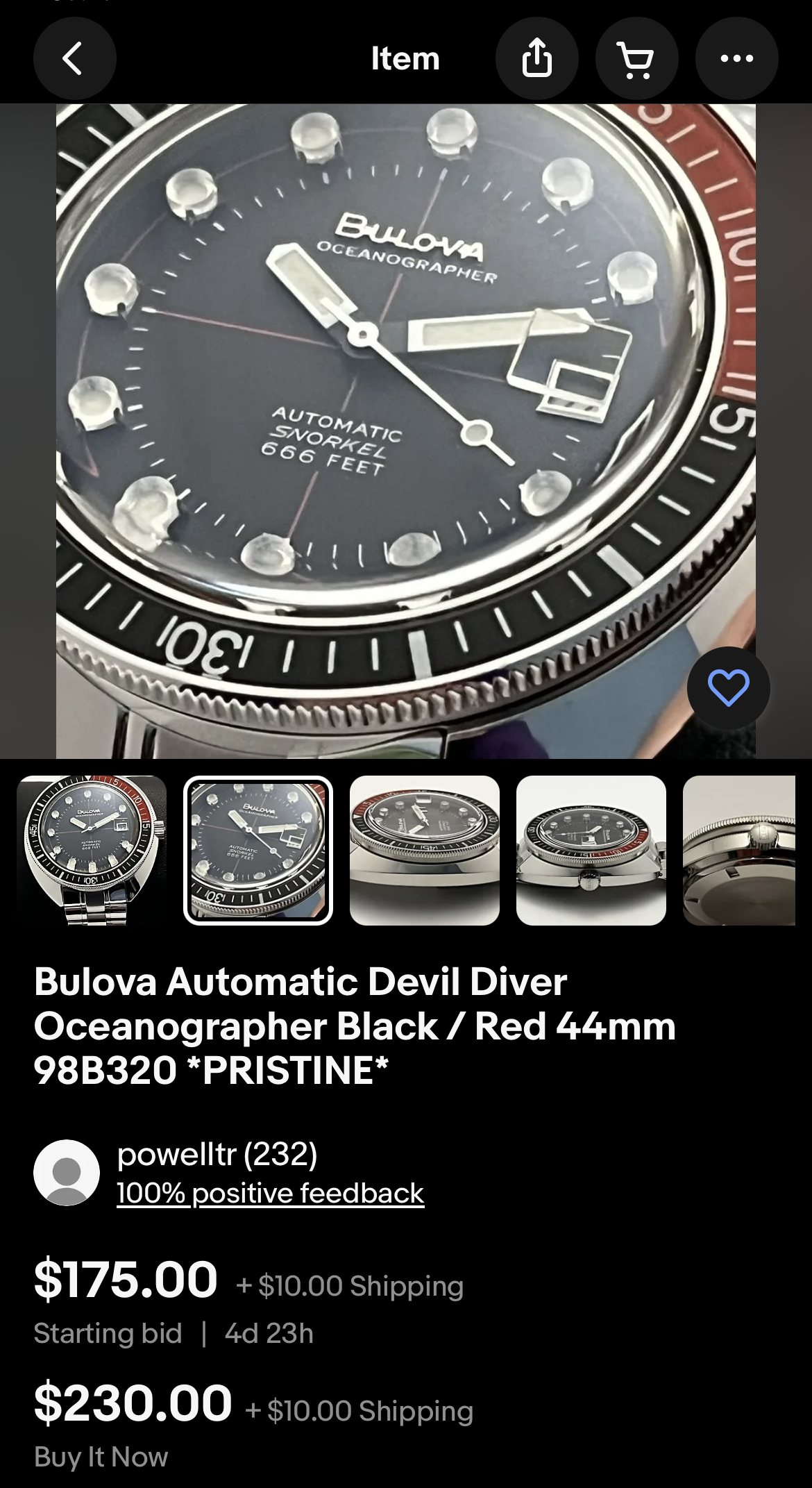 Bulova devil diver reissue for $230. Seems to be in great condition, quite large at 44mm if that’s your thing, and the lowest price I have seen during the last few months that I have been following these: