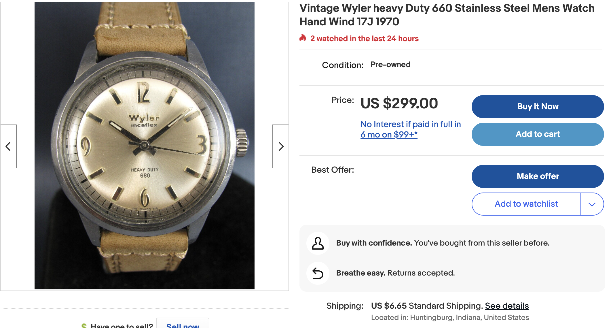 Nice little Wyler Heavy Duty listed by FourthStreetGoodies. Particularly like the clean dial layout and the case proportions on this one. Offers accepted so maybe a good deal can be had.