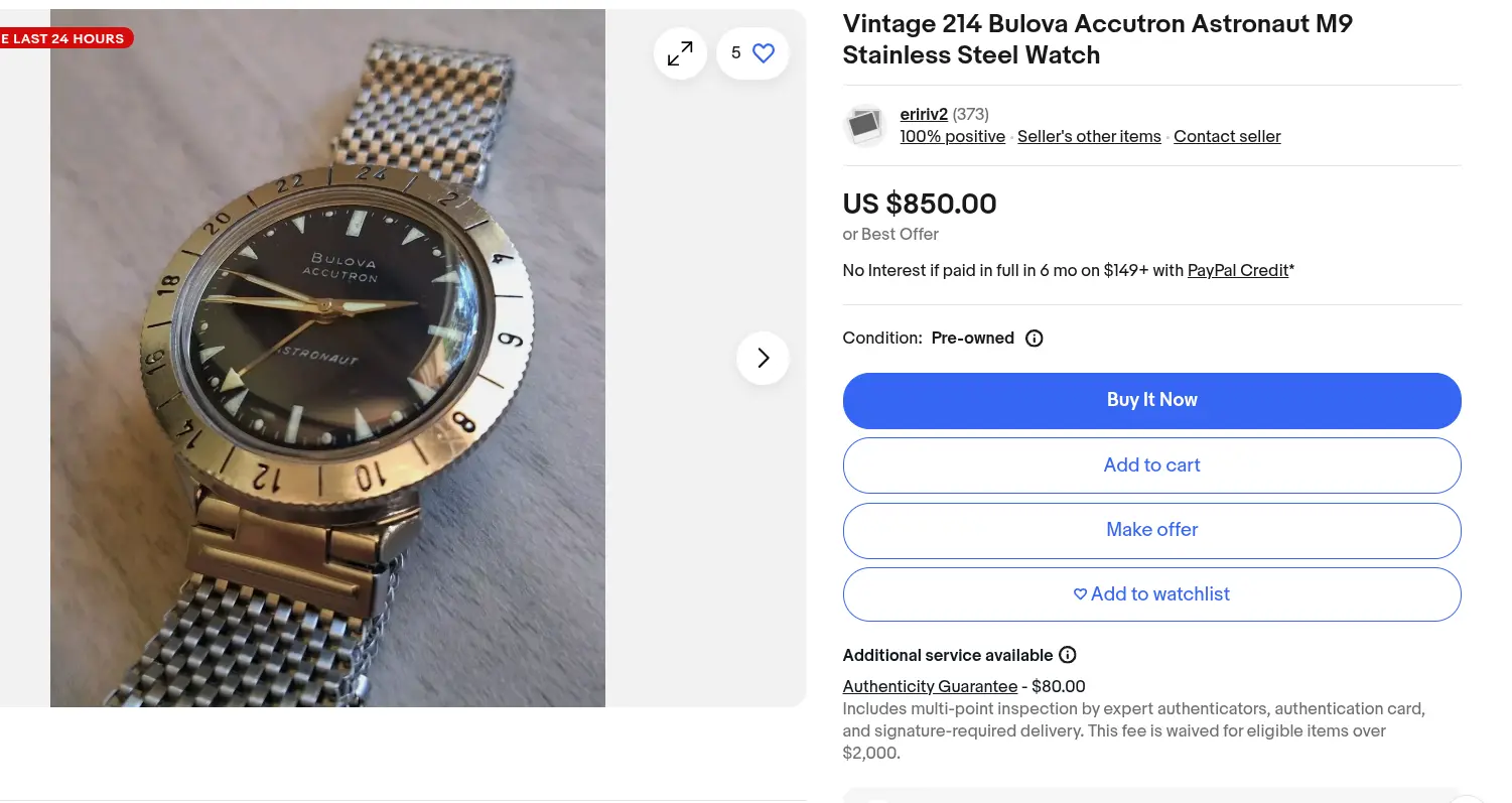 Cool Vintage Ball official railroad standard with twisted lug case going off in 6 hours. Personally I like the look of these over the more common cusion case versions. Currently under $200.
