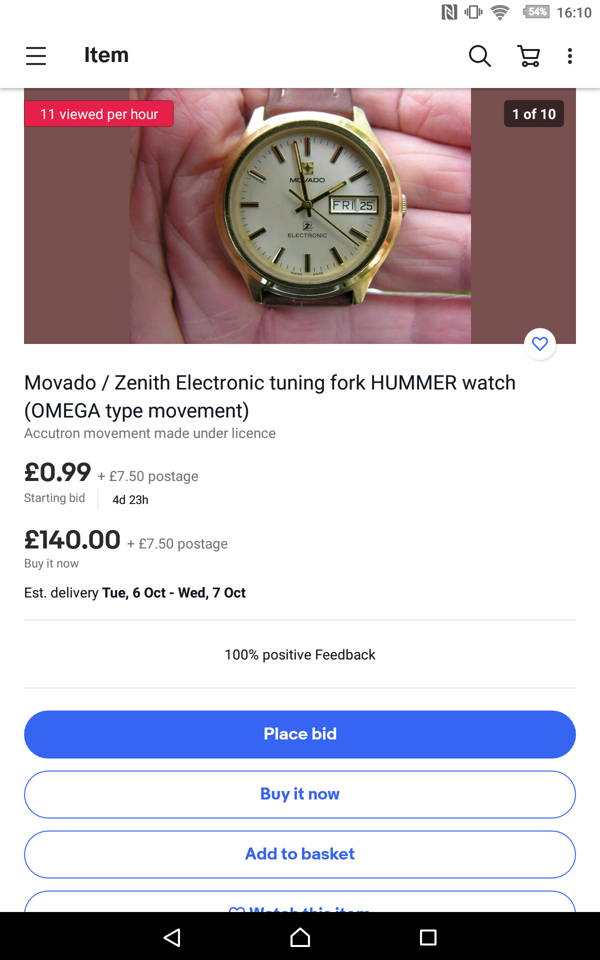Last one from me, really well priced hummer(tuning fork) for a fully working(Inc. day and date, unusual for a seller to confirm this, actually they say it's been recently serviced) nice condition one. At least for now there is a BIN, not sure if that will go once somebody bids.