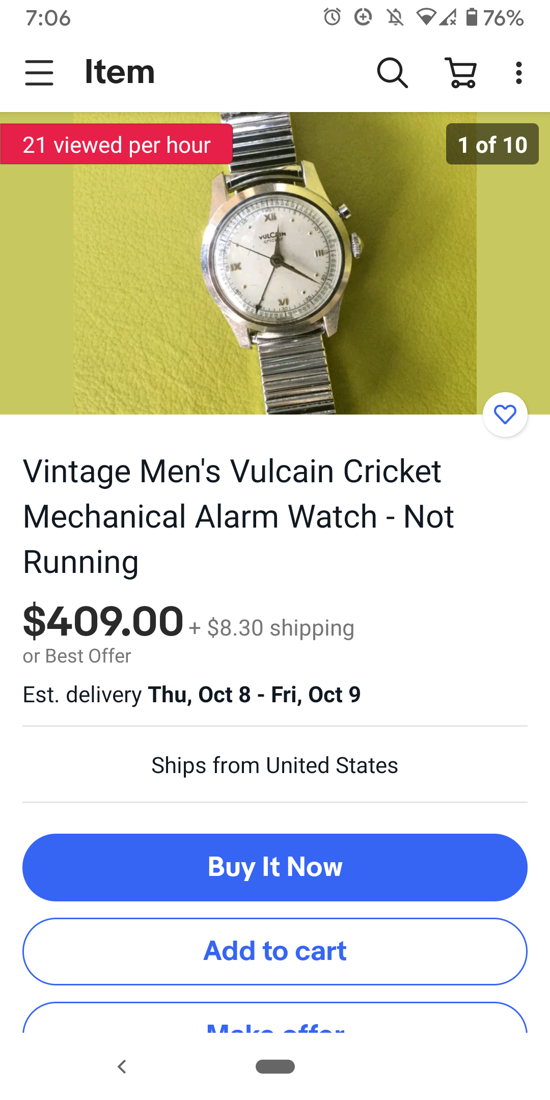 Great looking Vulcain Cricket with the numerals. There is another member with one and man is it a stunner. Non working but still worth a look. https://www.ebay.com/itm/133534939597