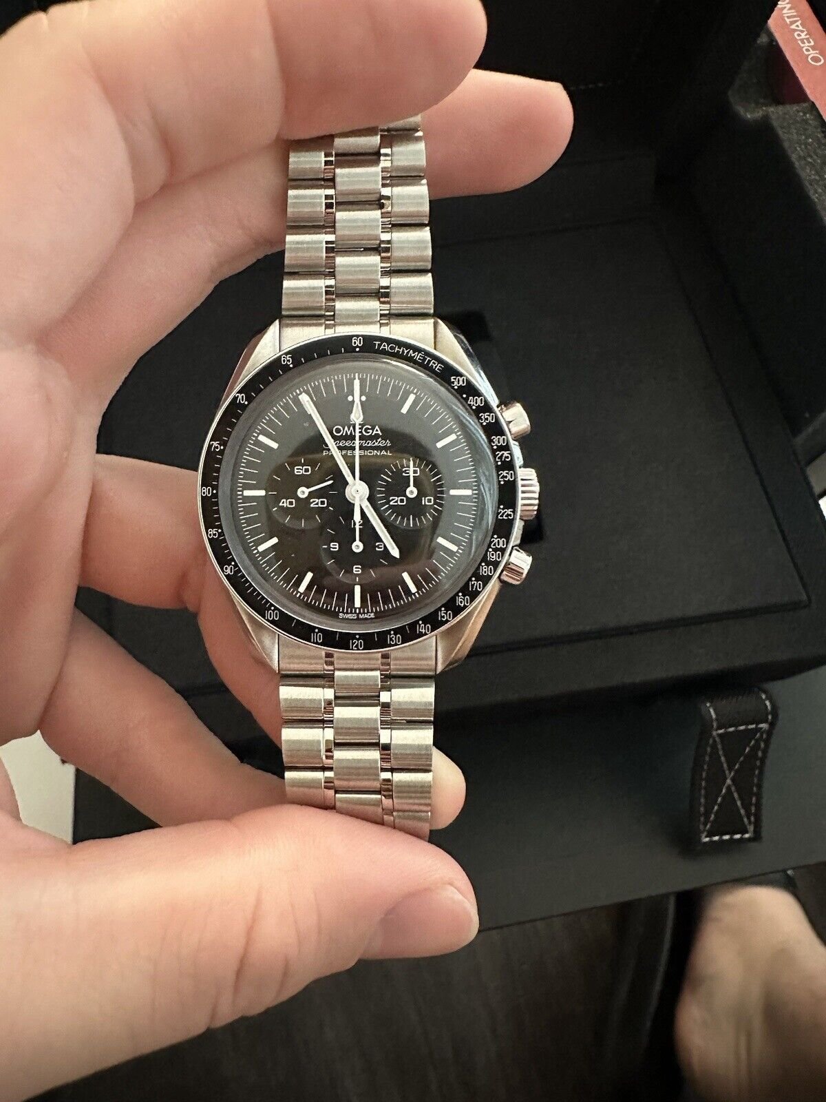 This should be interesting to watch, Speedmaster Pro Cal 3861 Latest generation white dial Moonwatch going no reserve