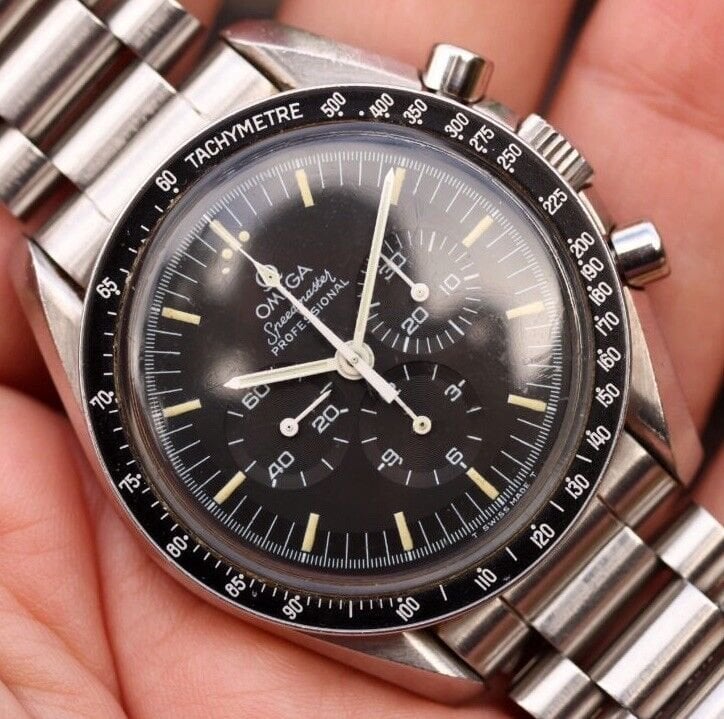 This one goes off in 1 hour, Speedmaster Pro Moonwatch circa 1987 with the coveted 1450/808 bracelet and tritium dial going with an opening of $3999. Not running so will need a full service immediately but seller is also open to offers which is worth a try, if this one passes in and re-lists it could be a very nice pickup.