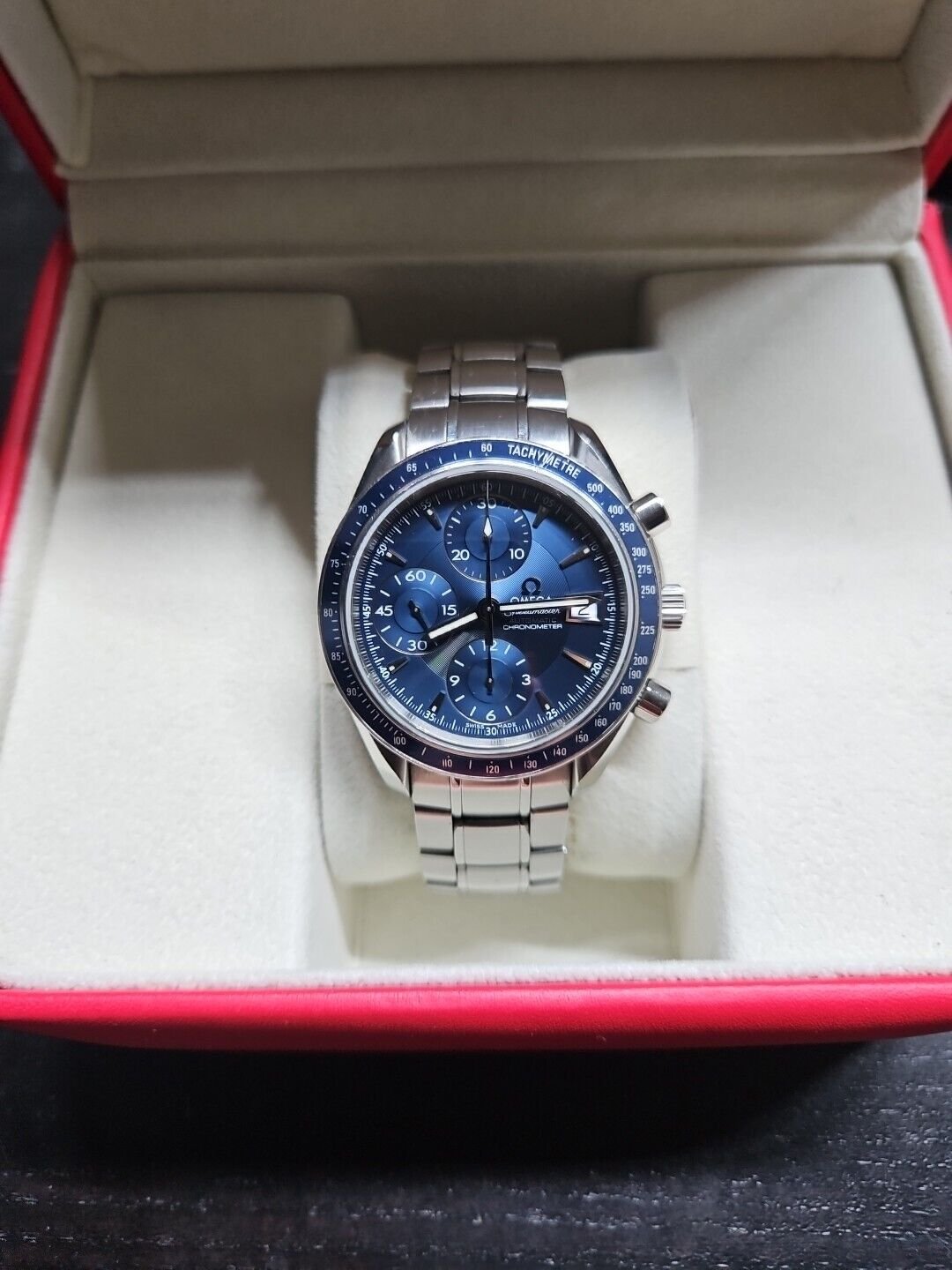 ··Ash @ ΩFSpeedmaster Date Chronometer in steel, blue dial going no reserve