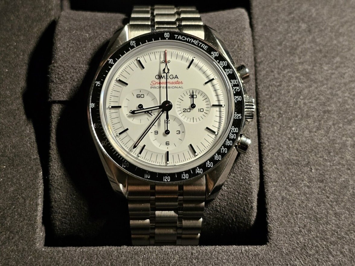 This White Dial Speedmaster Pro Cal 3861 goes off in 7 hours, currently at $6,900