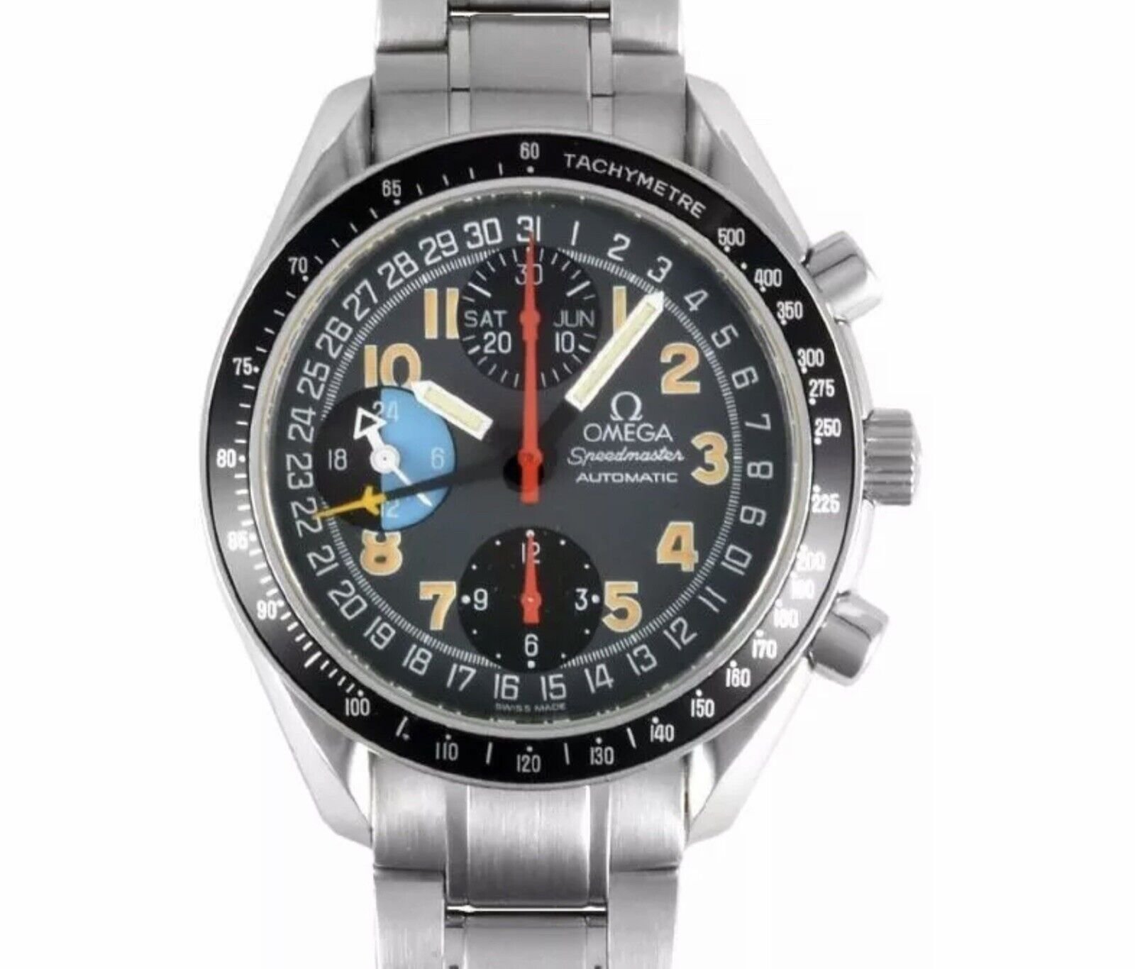 ··Ash @ ΩFSpeedmaster MK40 rainbow Schumacher dial on bracelet going no reserve