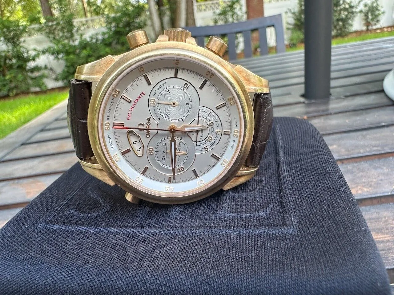 18K solid gold Omega De Ville Chronoscope Rattrapante Going no reserve in 19 hours, current bid is $7,600, very rare to see one come up at auction