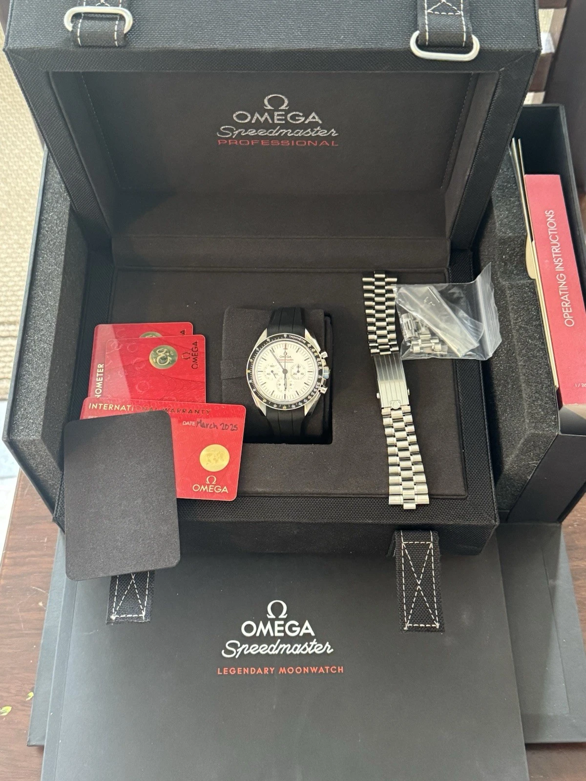 Speedmaster Pro Latest White Dial Cal 3861 with both strap and bracelet going no reserve