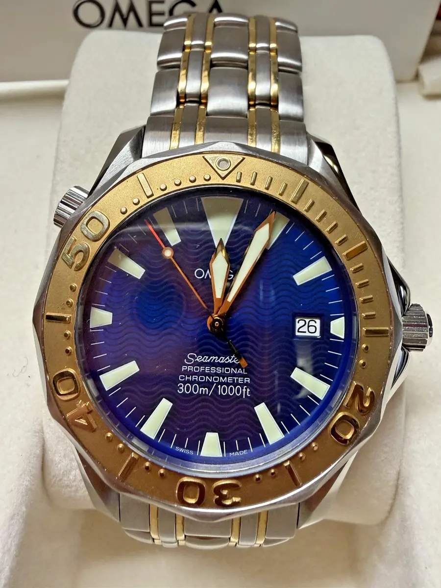 馃嚭馃嚫 Omega Electric Blue Two-Tone Gold & Steel Seamaster Pro 300M Diver going no reserve