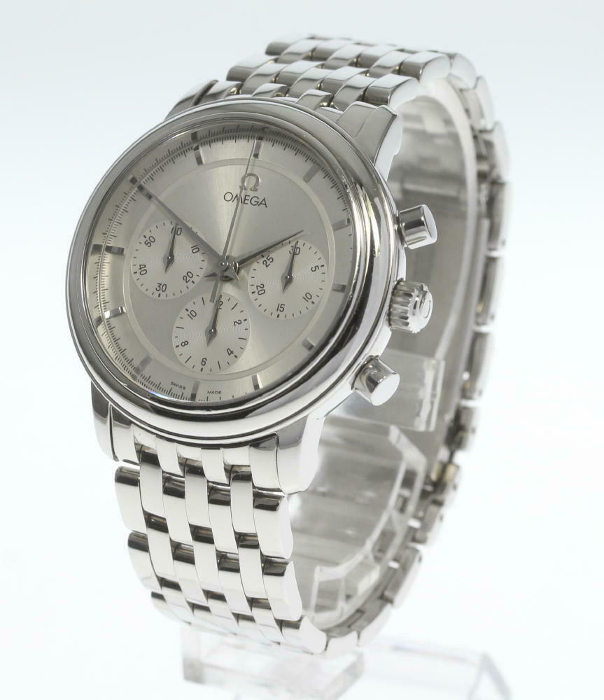 This is one of my favorite lesser known modern Omegas, the De Ville Prestige Calibre 861. Same hand-wound movement as a Speedmaster Pro moonwatch but in a more dress watch size and quite thin, the bracelet on these is also quite comfortable and reminiscent of the old BOR in style. For the money its a great way into an Omega chronograph with a highly respected movement