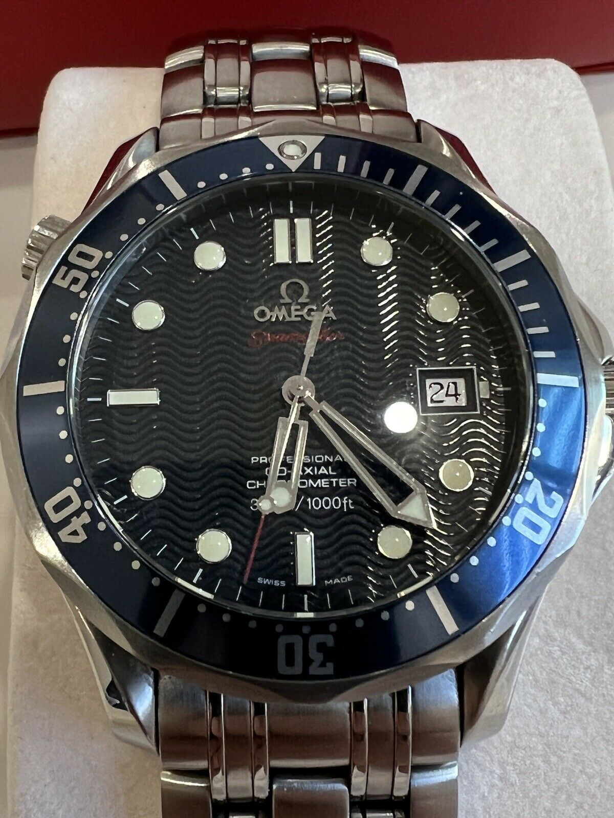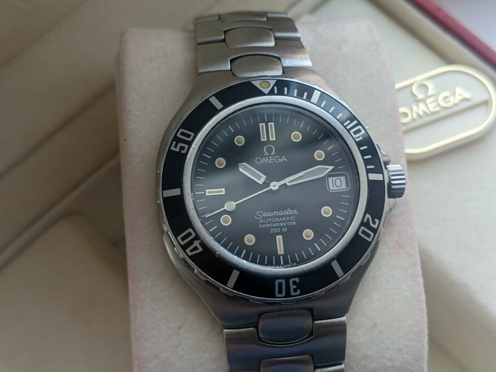 路Previous generation ceramic Seamaster Pro, Cal 2500D which is a bit thinner, very reliable and a really nice value proposition in black. Bracelet is in the box along with the strap.