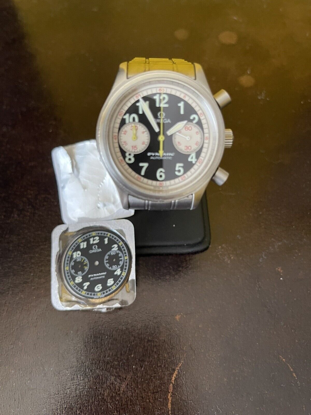 UK Watch, Omega Dynamic III Chronograph with both regular dial and additional Targa Florio panda dial attached on bracelet and cheap opening bid