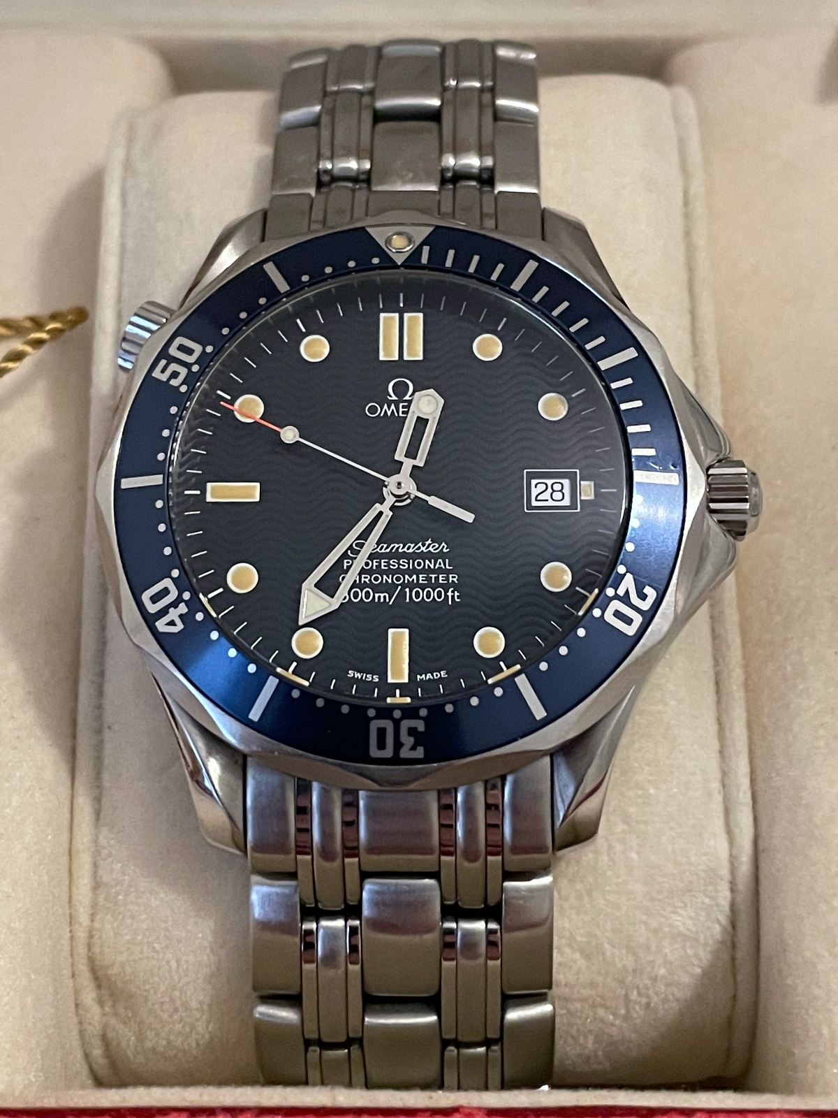 ·This is a really good deal at the buy it now price, A Seamater Electric Blue full-size chronometer Cal 1120, with both the factory polished bezel, as well as a second blue 2531.80 bezel, which costs several hundred. Both bezels and the watch for under $2k in that condition is a great package.