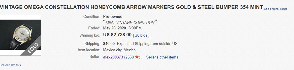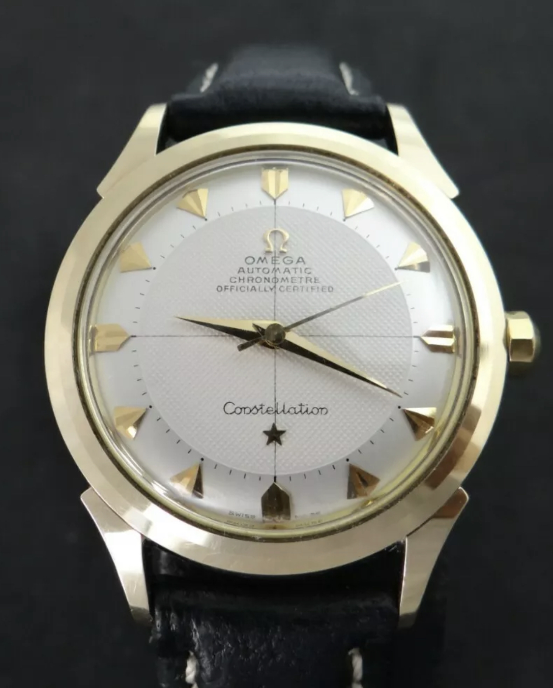 VINTAGE OMEGA CONSTELLATION HONEYCOMB ARROW MARKERS GOLD & STEEL BUMPER 354 MINT