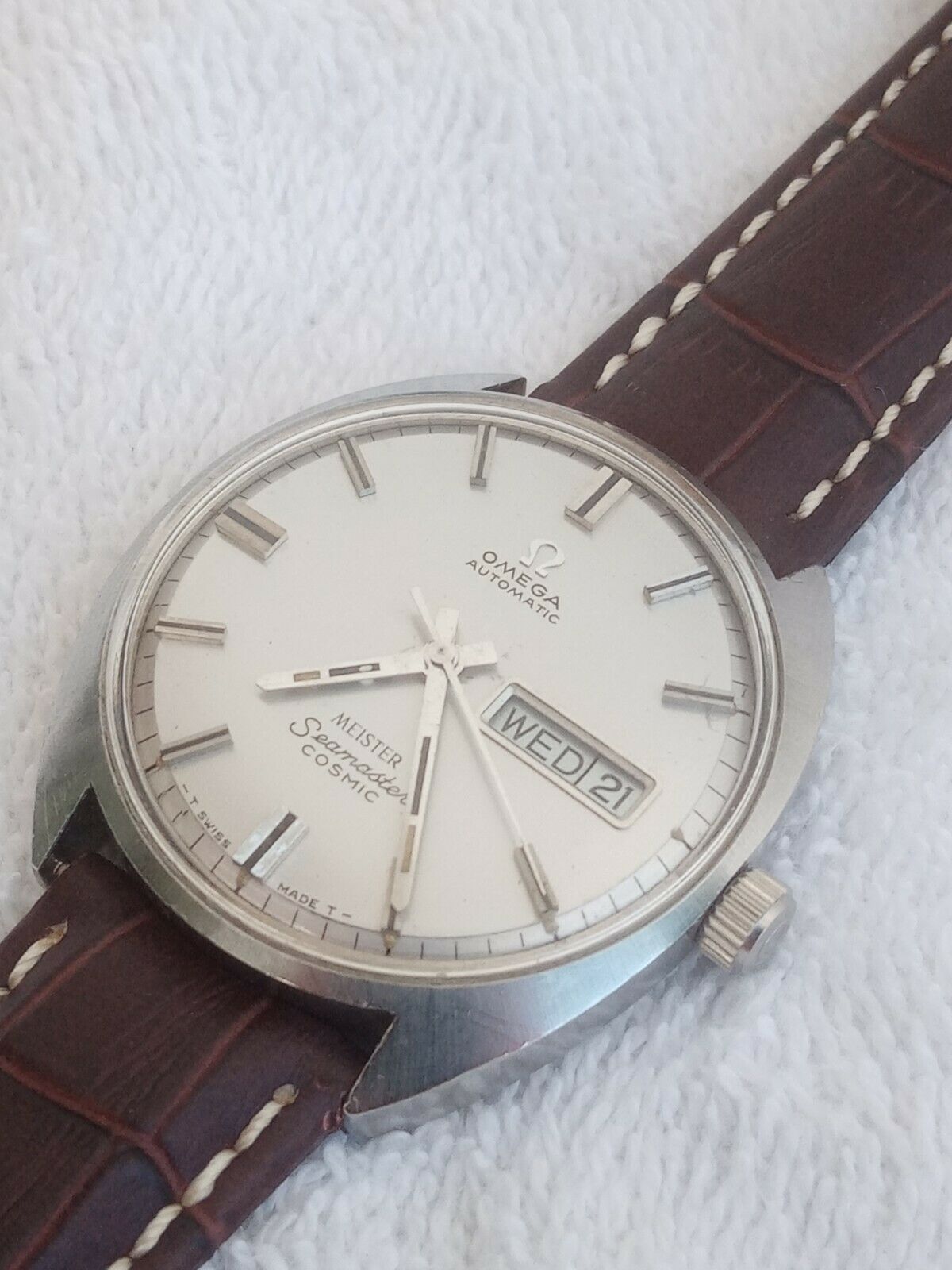 Nice found condition hidden crown Constellation in steel, nice sharp bezel and lugs with a clean looking dial