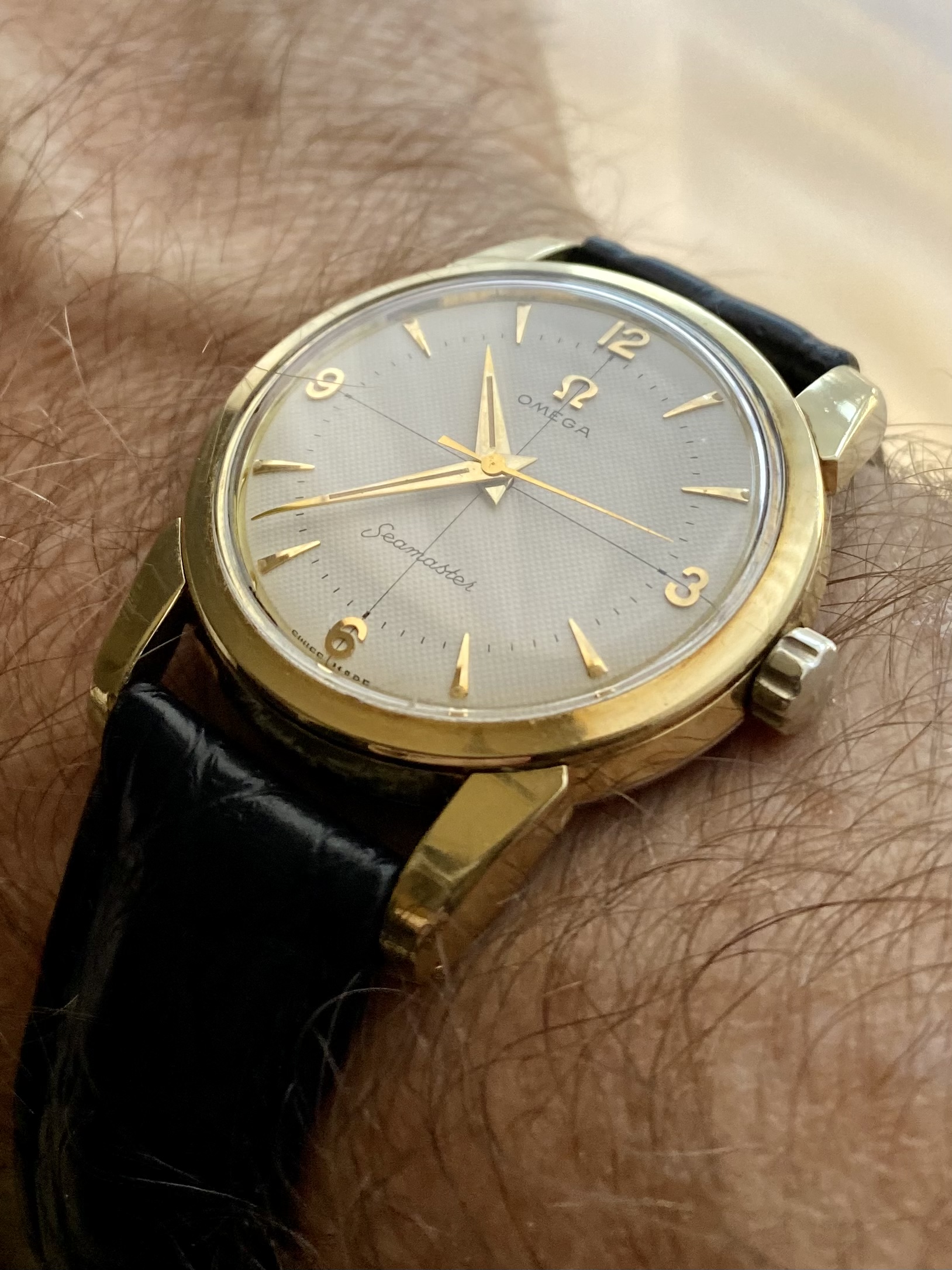 The watches I tend to post here I try to make a first good vintage watch, to service and wear daily to work. A $300 Geneve 601 in gold plate is the type of watch a young man or woman can afford straight out of university and pair with a well fitted suit to look respectable for the same money as a cheap Seiko or Apple Watch, and it’s a real Omega with a genuinely good movement that you can wear for 30 years with regular servicing, as long as you don’t go swimming with it.