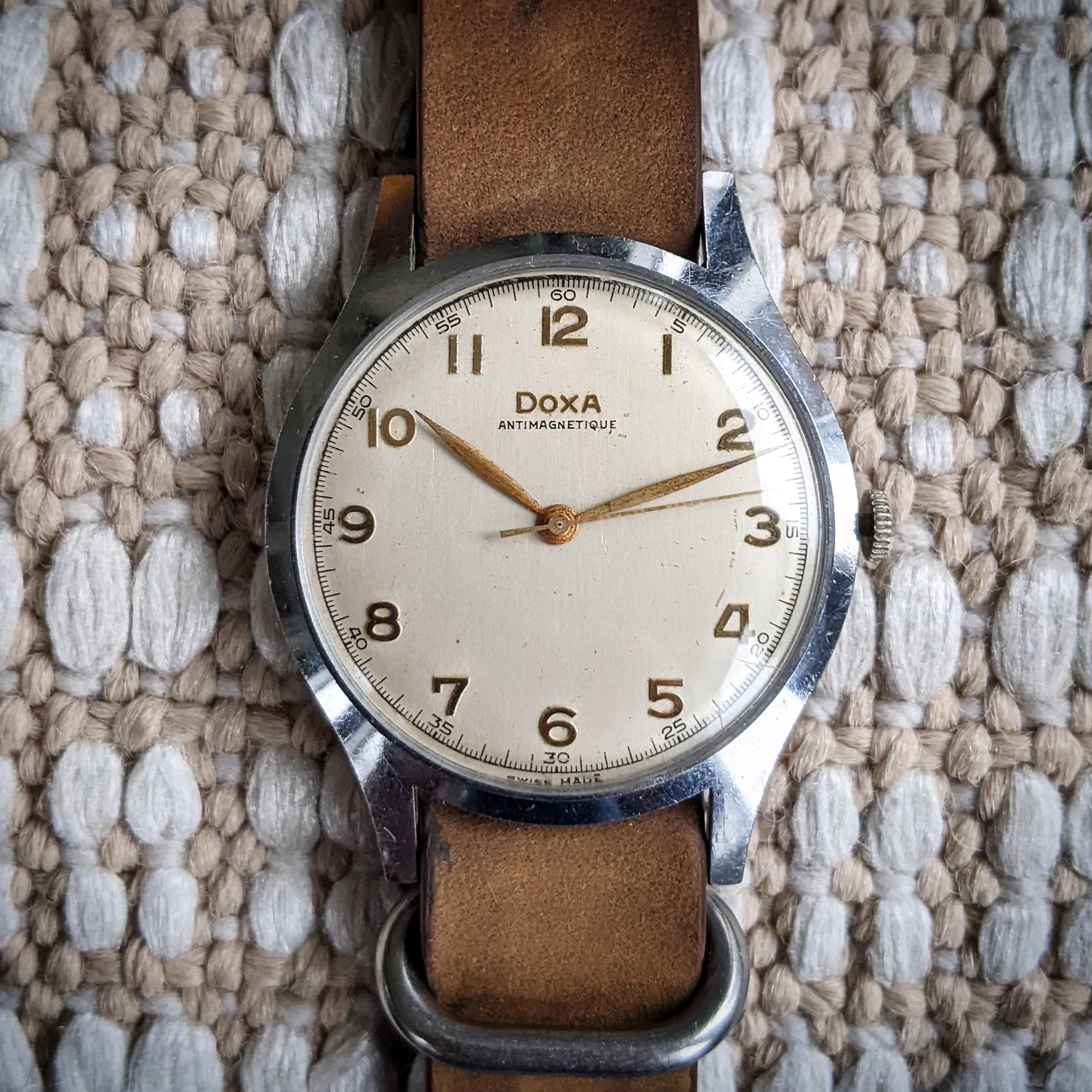 ·This user farkasvirag on Reddit has some nice watches for value. My favourite would be this 38mm Doxa Antimagnetique priced at $299. Note, I can't tell by the pictures exactly, but the the seconds hand looks a bit shorter than it should be.