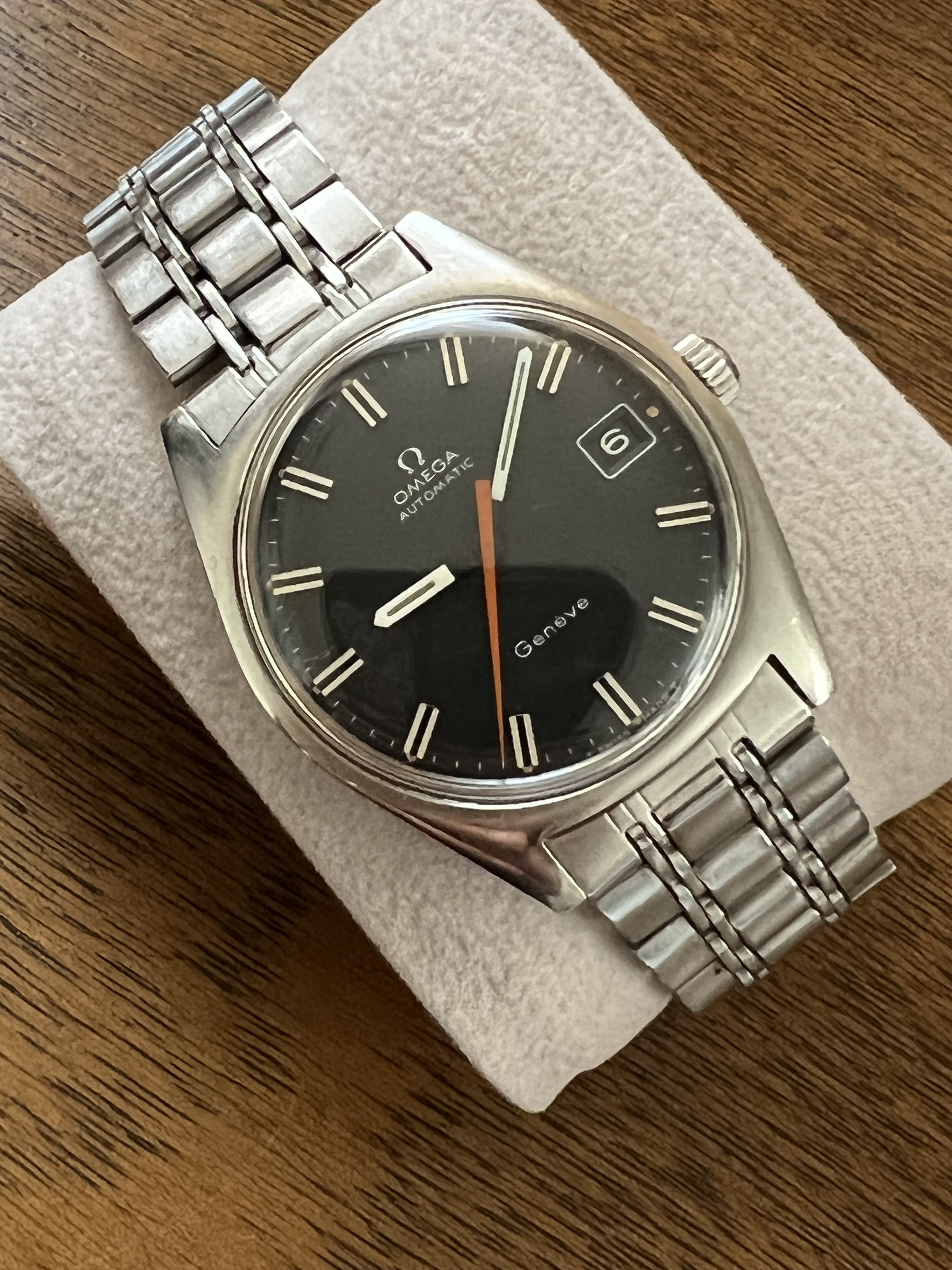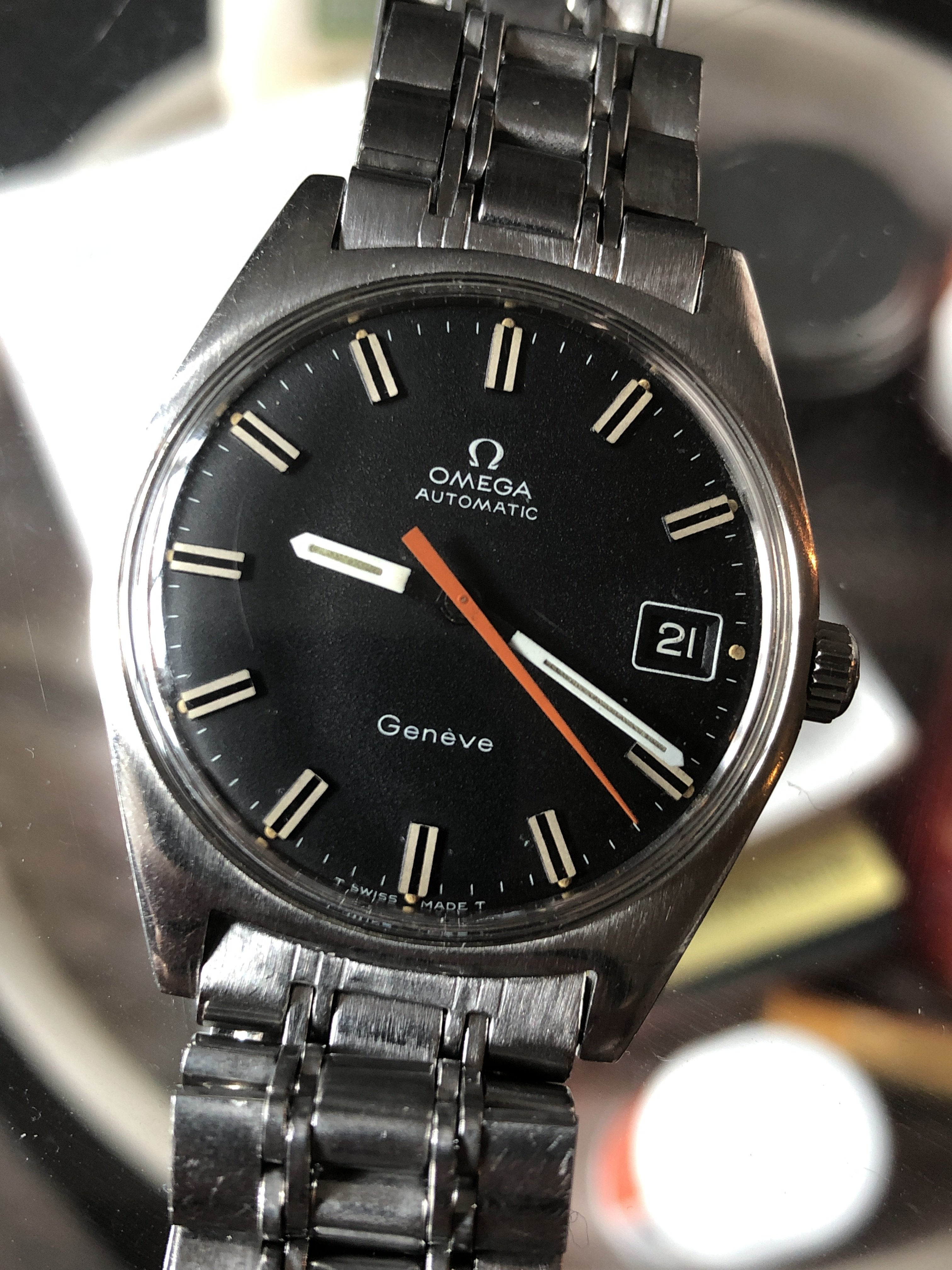 Note the style of Omega logo towards the top and the little diamond-shaped mark towards the bottom: