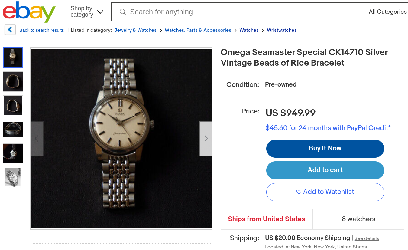 ·A nice fat lugged Seamaster in honest condition. The pictures are not the greatest. No movement pictures, but it says it is in working condition. If there are problems, you would have justification to return it. Also, it is misidentified, and is not a 14710. I think it may be a 2846.