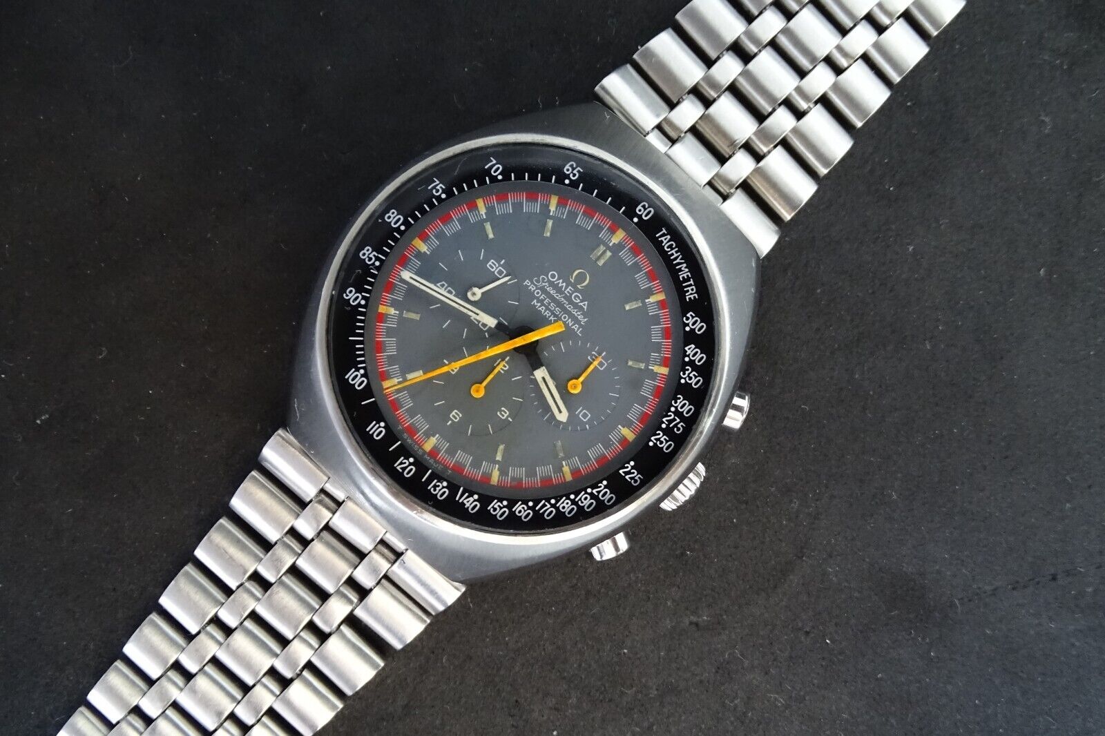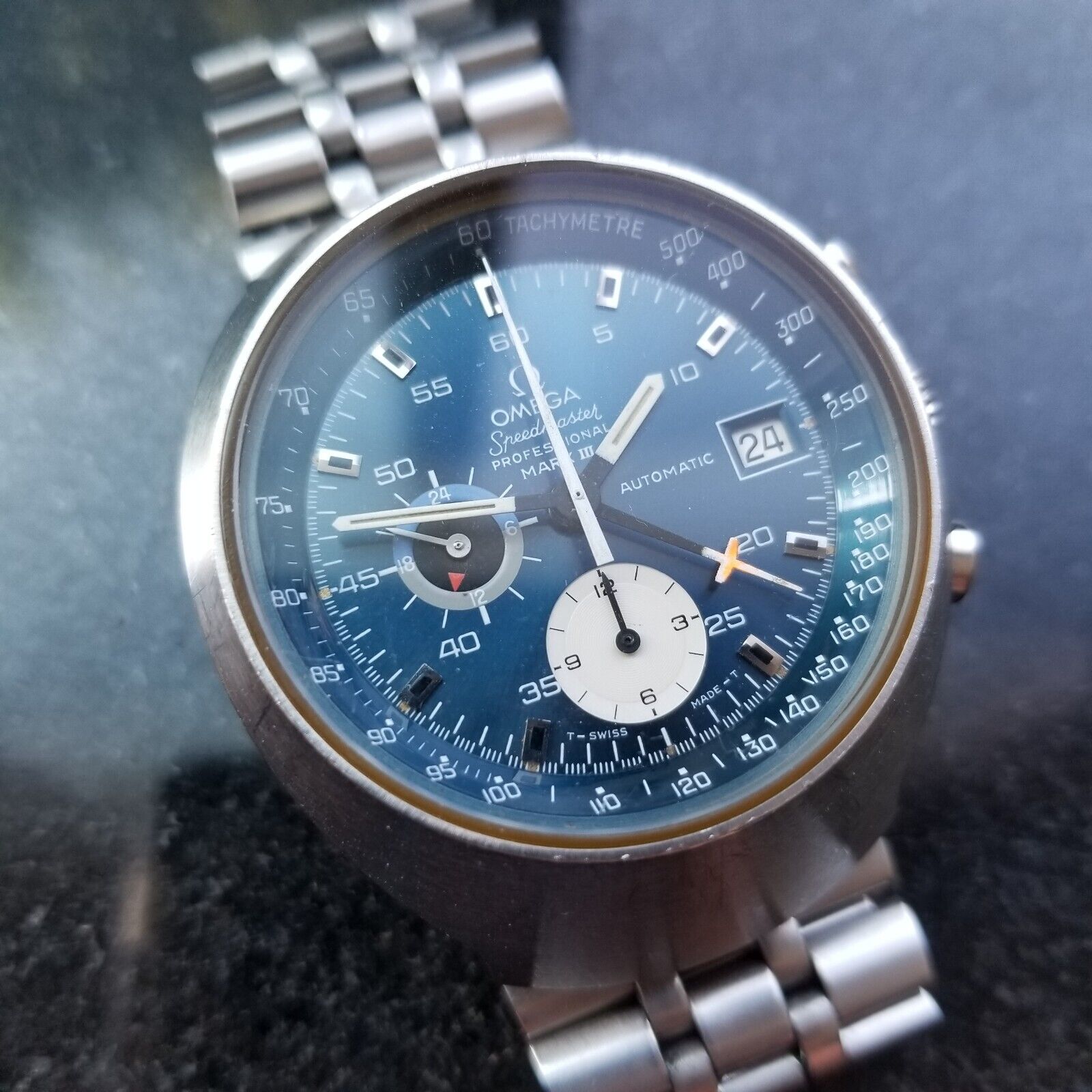 I’m not a huge fan of the Speedmaster MK3 black dial, but the metallic starburst blue dial Seamaster 176.002 is quite a pretty watch and this is a pretty decent example