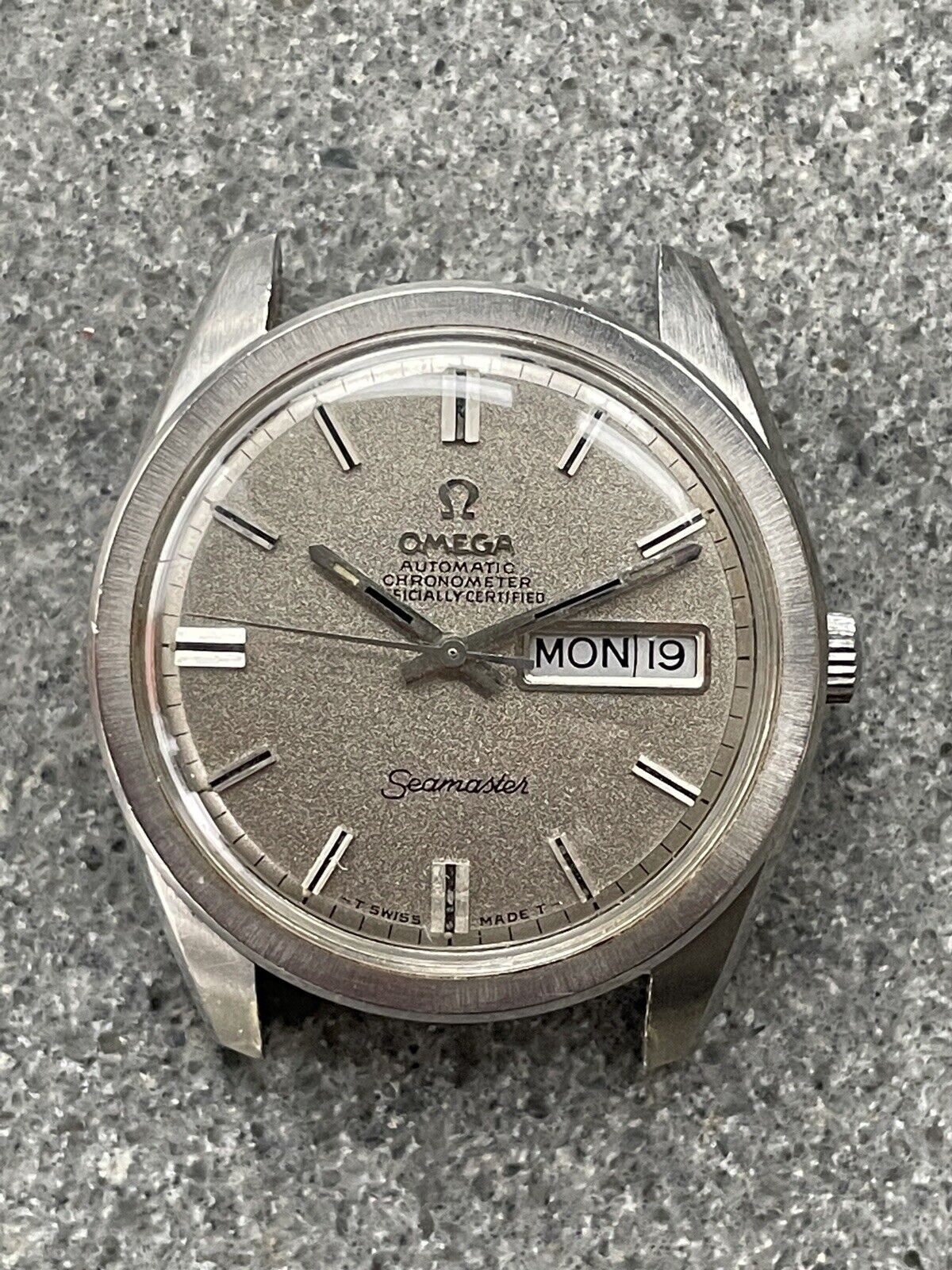Under that nasty crystal and filthy case I think there’s a really nice watch in there, well undervalued thus far, but its a monocoque Constellation in steel