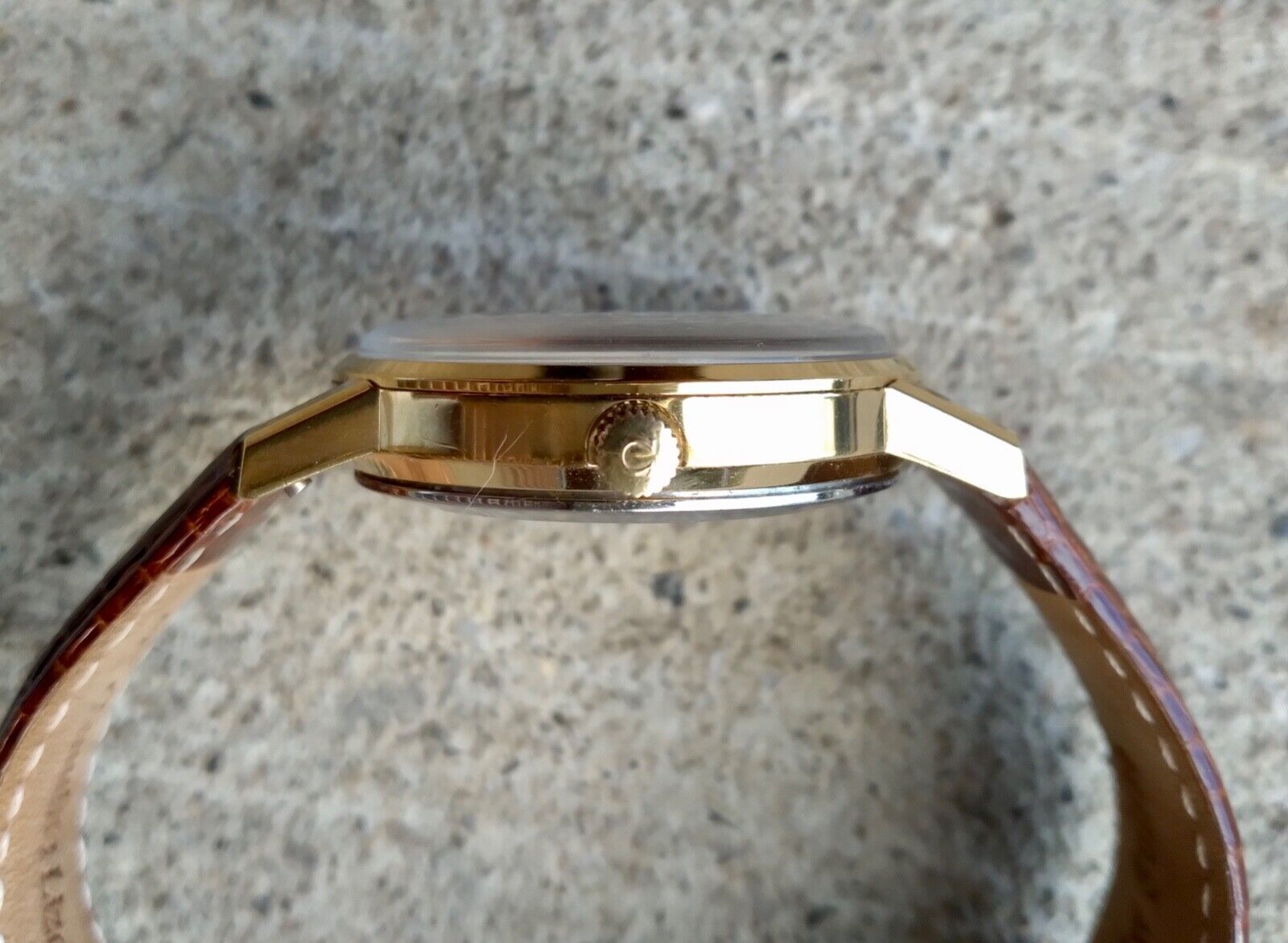 Gold-plated automatic jumbo geneve in nice condition, tarnished but no wear-through, looks like a presentation watch that wasn’t ever really worn.