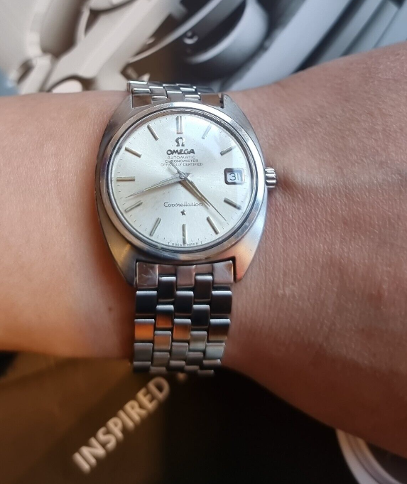 ··Ash @ ΩFIntegrated bracelet 14K gold Seamaster De Ville, not for people with big wrists but the bracelet is actually in decent shape still.