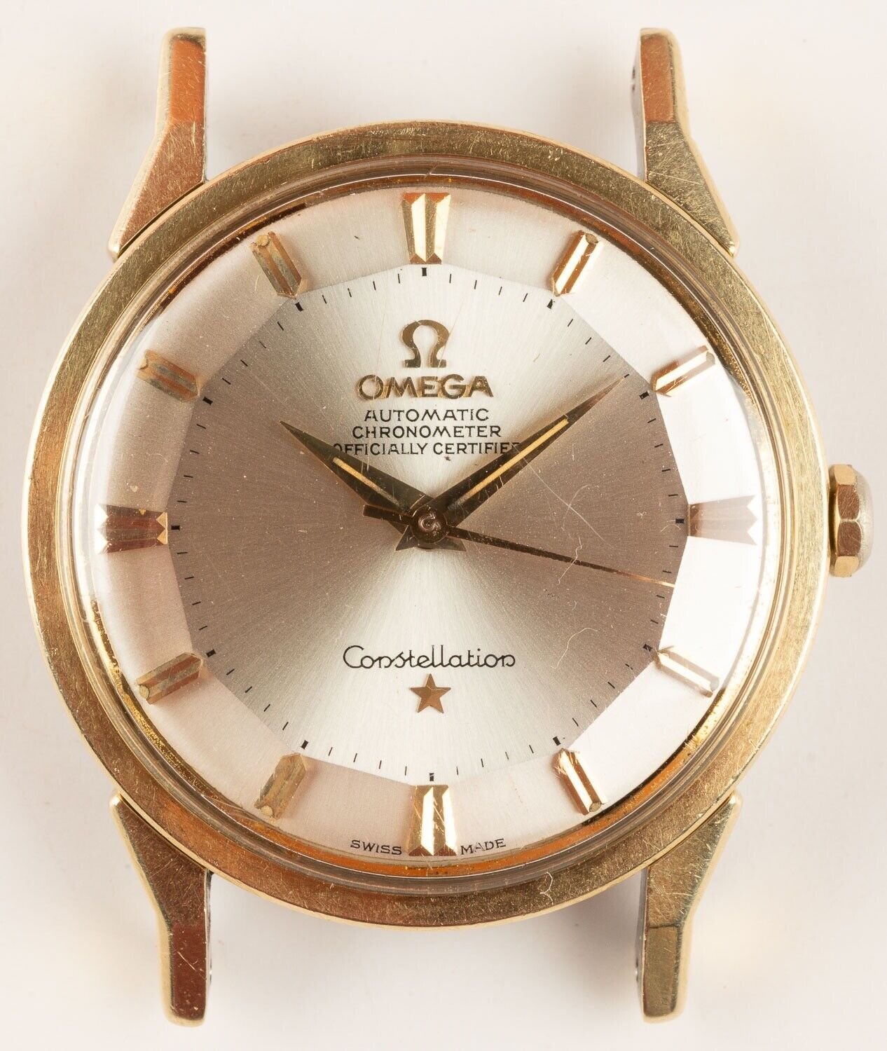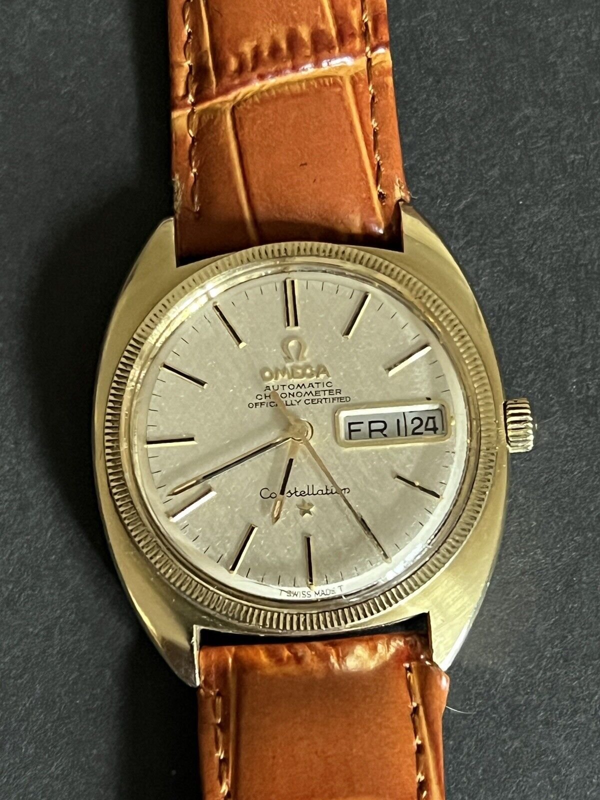 A rather clean looking ref 14900 dogleg Constellation pie-pan in gold-cap, Cal 551, needs a crown and service but should clean up very nicely