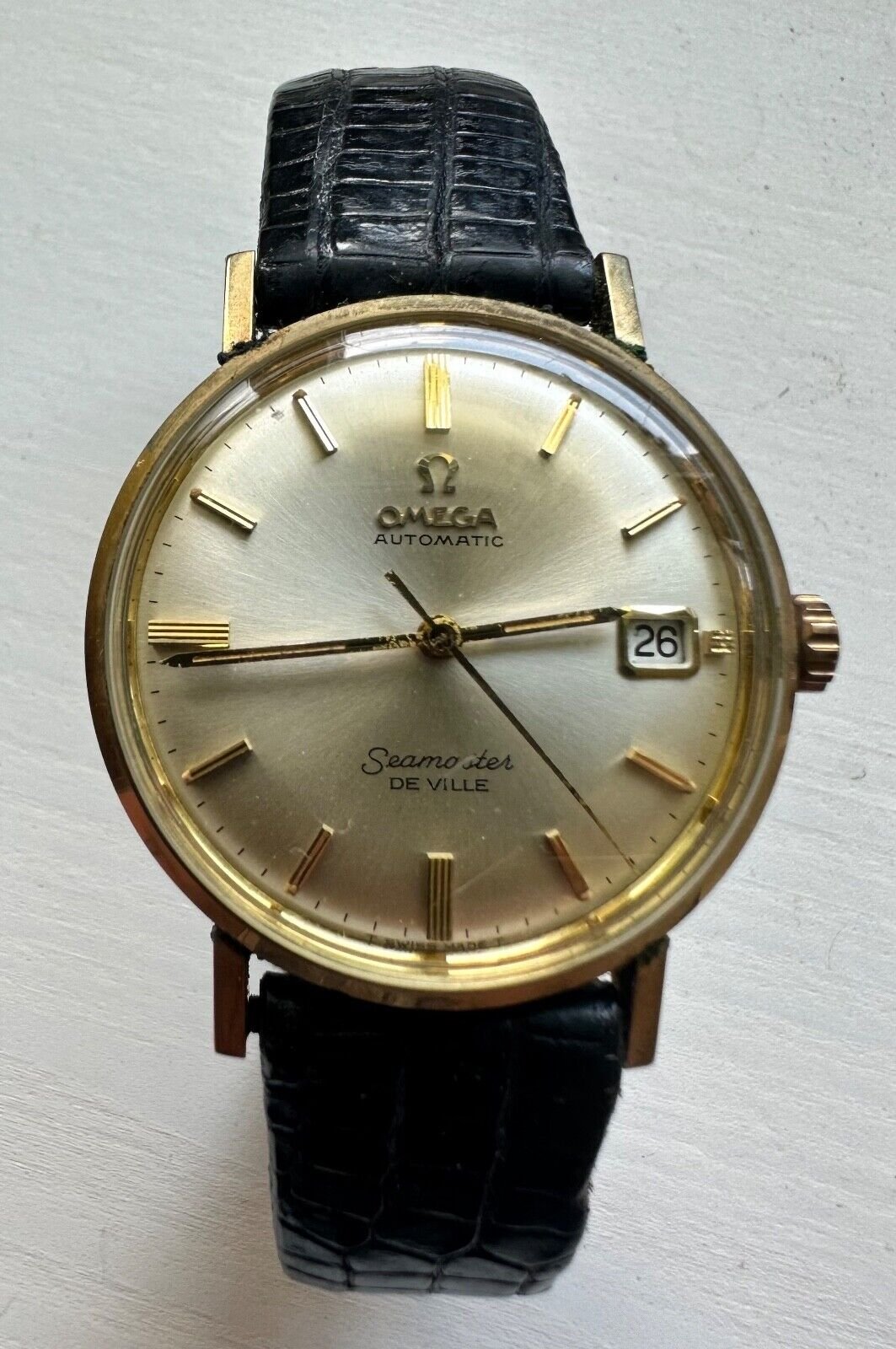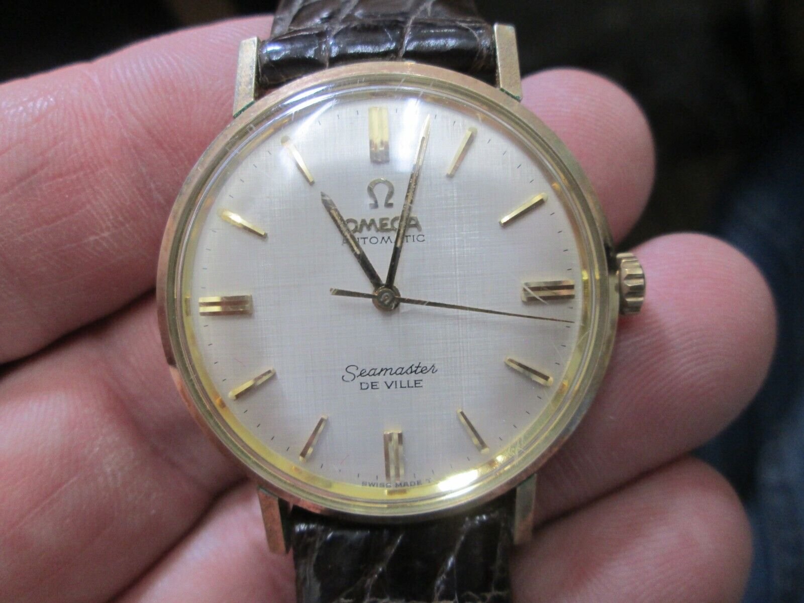 Really nice parchment dial Seamaster De Ville gold~filled presentation watch with box and papers going off in 4 hours