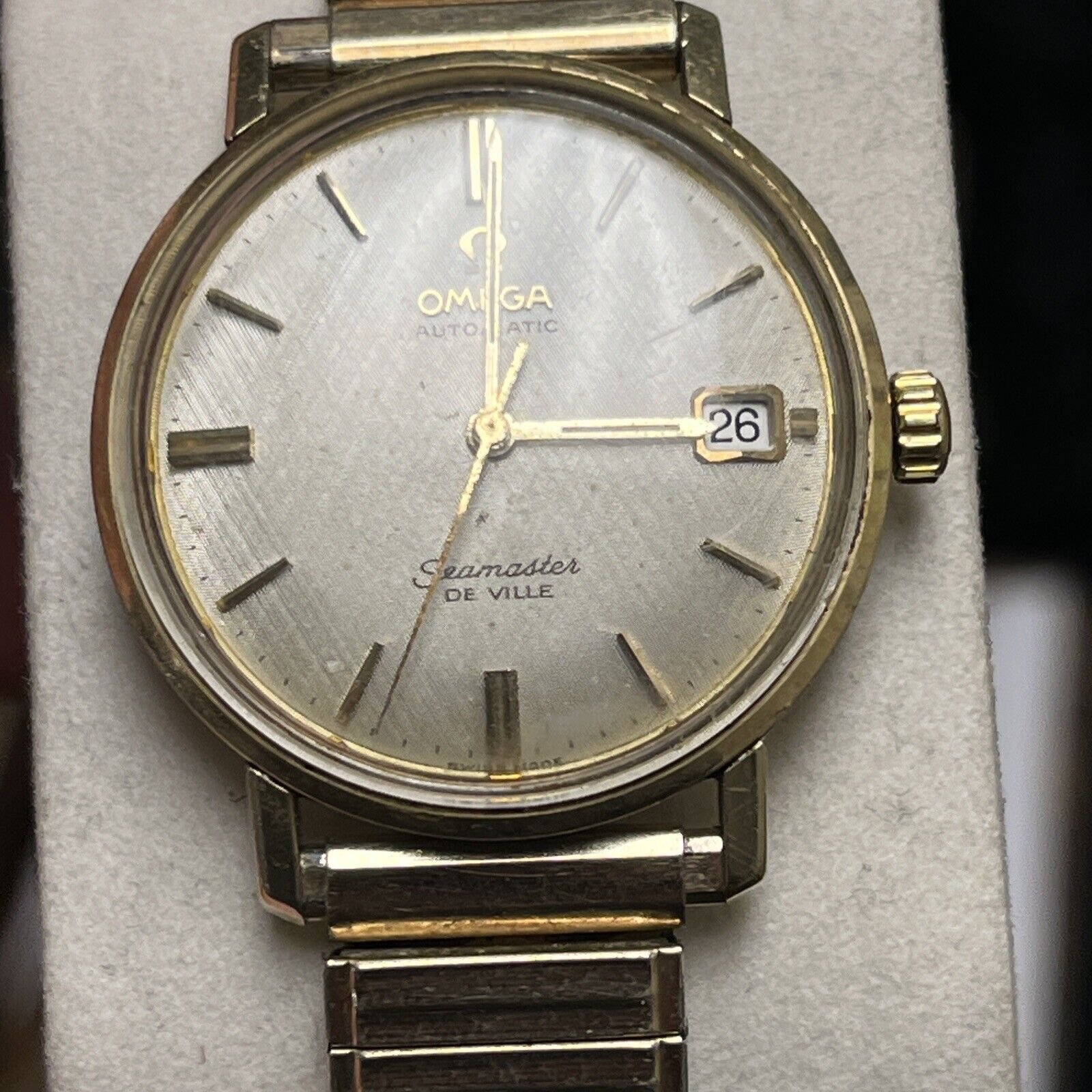 Vintage Seamaster De Ville with textured linen dial, scratched up crystal but looks to be decent overall condition