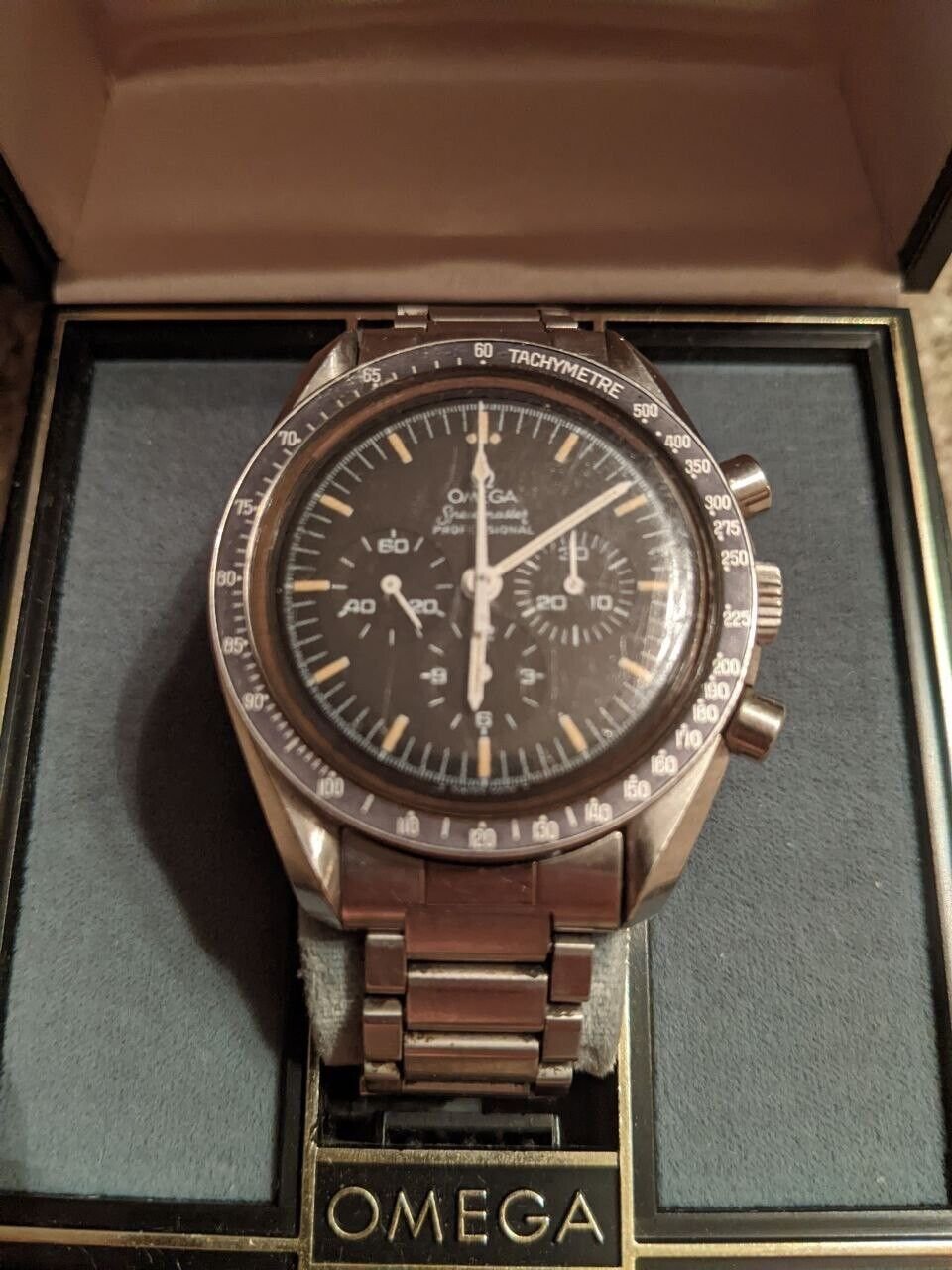 Another Speedmaster 145.022 Straight Writing with DNN bezel, these have gone very cheaply lately and are one of the best value vintage Speedys left, easy to maintain Cal 861 movement and one of the more special sub-references with that calibre. Doesn’t have the 1039 bracelet and endlinks but imo its a bit of a mediocre bracelet anyway and better on a strap or something.