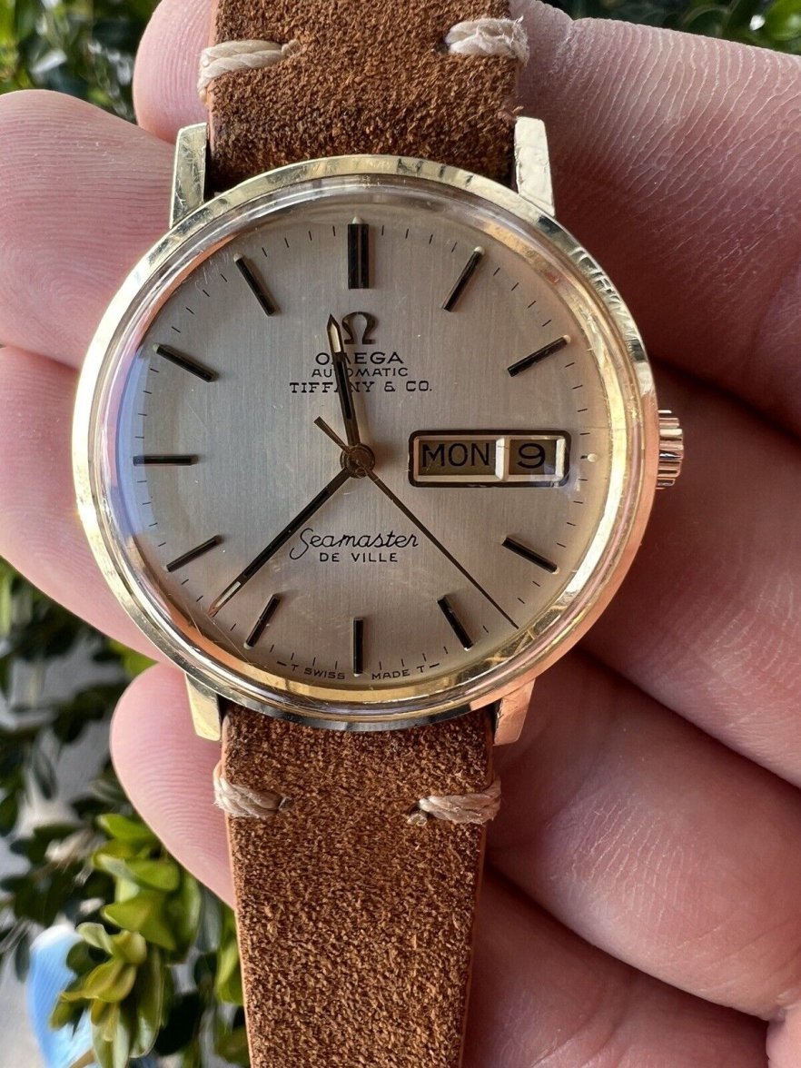 Really nice clean example of a Seamaster De Ville Tiffany & Co in 14k gold, this is the specific reference that is known to have unusual looking fonts, so while you’ll notice they’re nothing like other De Ville’s, this is a US market specific special dial and is entirely correct for this model. Going no reserve