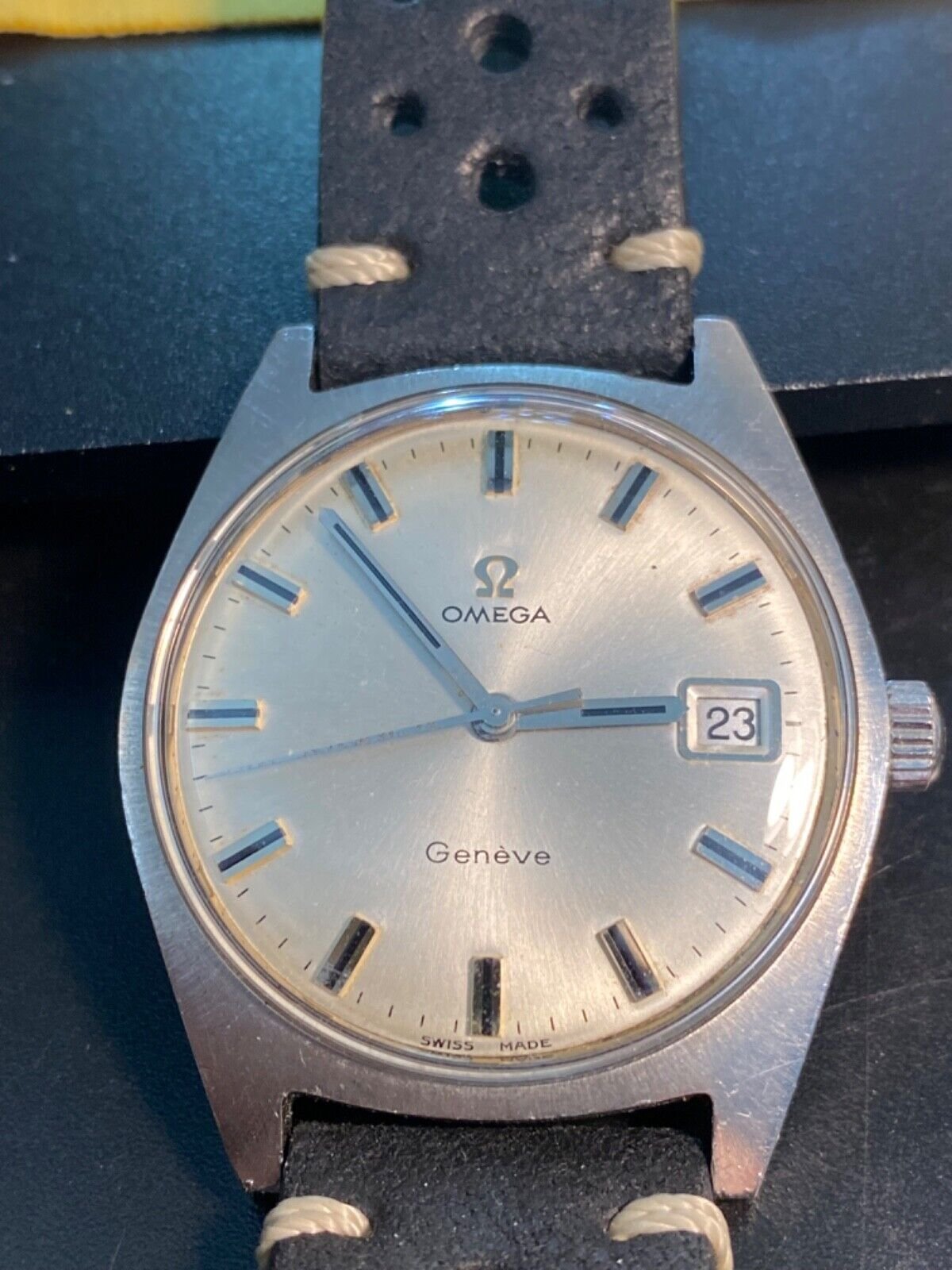 Another nice barcode dial Cal 750 Geneve 166.0141 in steel going no reserve
