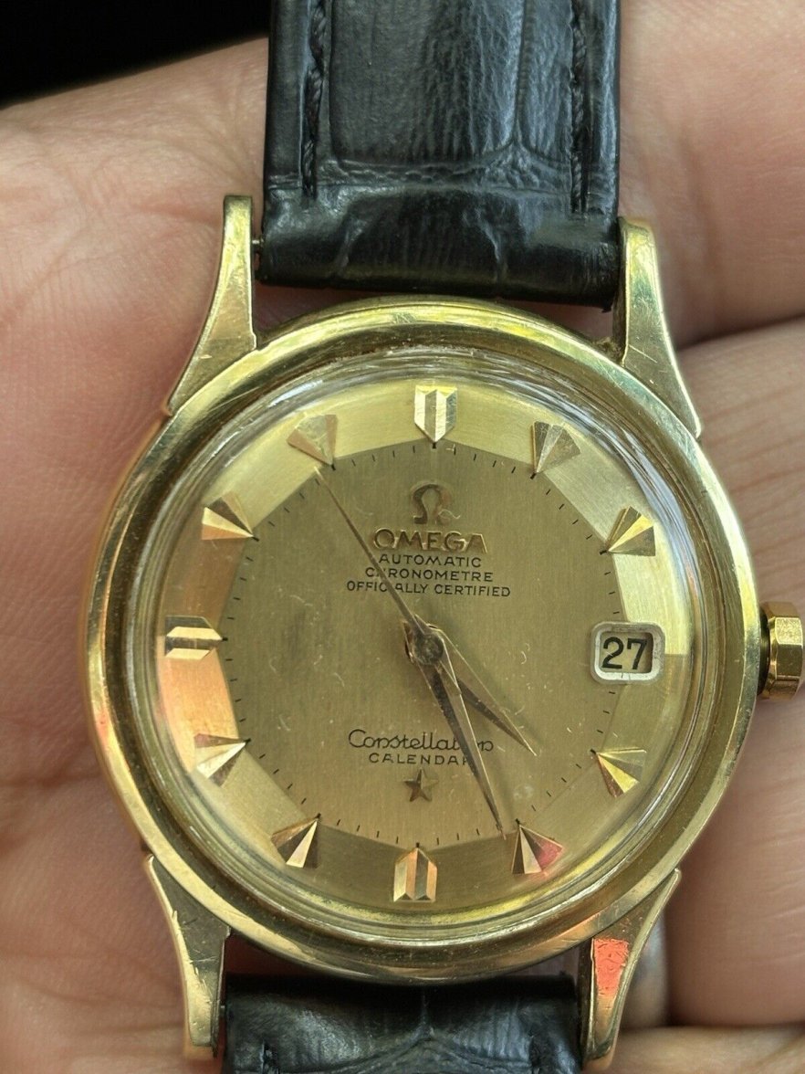 Constellation Calendar De Luxe Cal 504 in 18K Gold going no reserve with a reasonable opening, not perfect, has been polished and some other imperfections but likely will go in the low $3k range at a guess, possibly mid 3K if more bidders are keen, but definitely look at all the photos. It’ll look great on the wrist that’s for sure