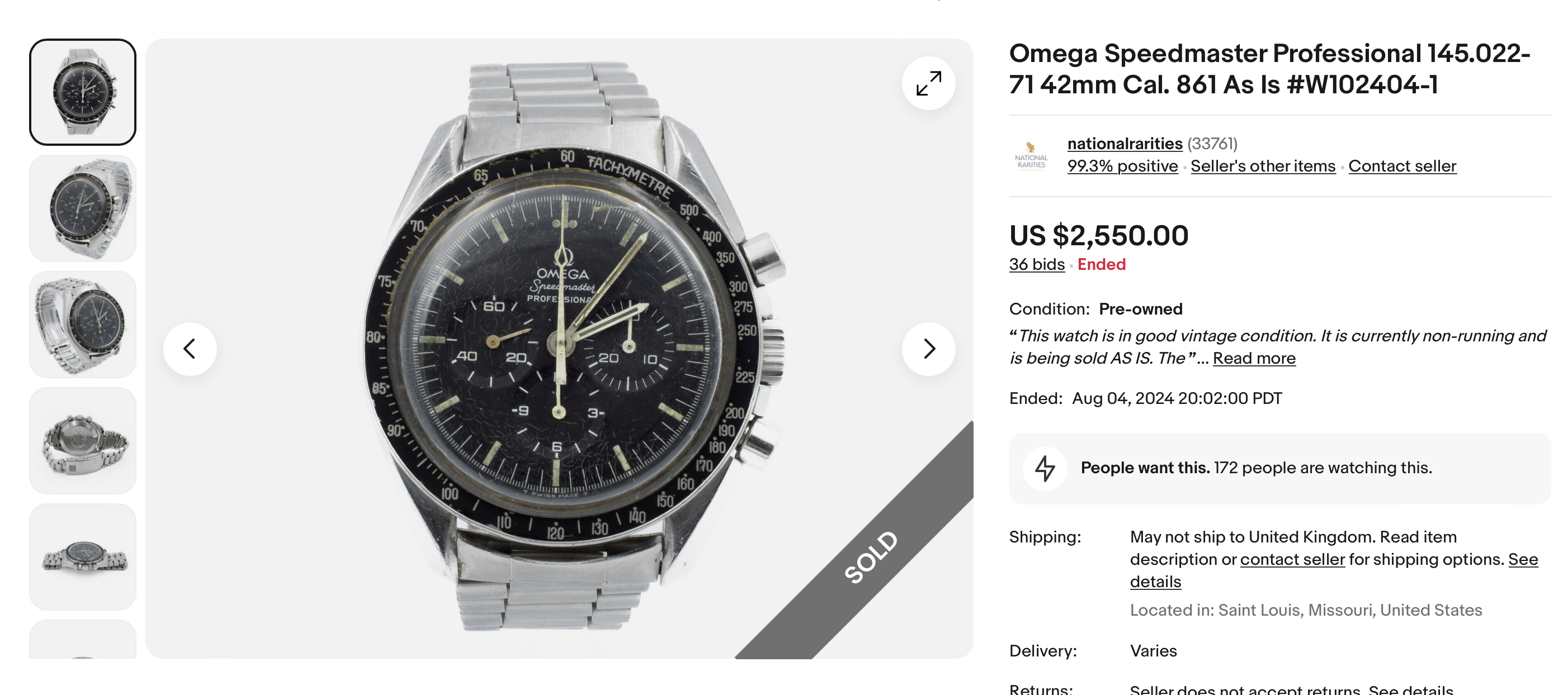 Bottom line? I think it's a crap shoot, but not out of the question you could be in business for $3.6k or thereabouts. That's certainly on the lower end of the price range for a serviced, wearable Speedmaster; there have been some decent eBay sales in the $3,500 range recently, albeit not with any sort of service history. Personally, I would probably have held out for a better example, but that's just me.