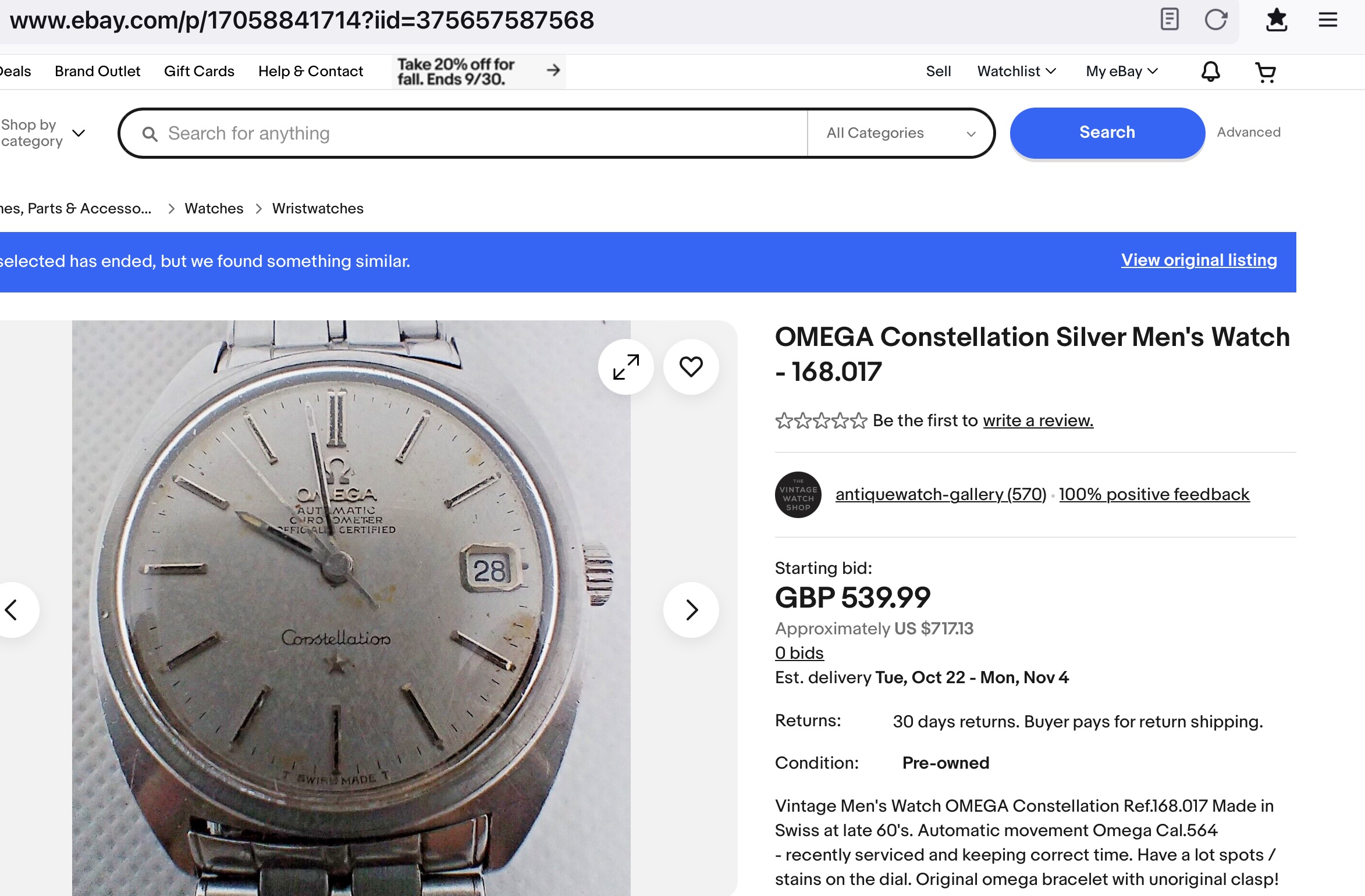 Really nice clean and sharp Constellation C-Case in steel going no reserve in the UK in 9 hours, for 650 quid opening bid, someone really needs to grab it