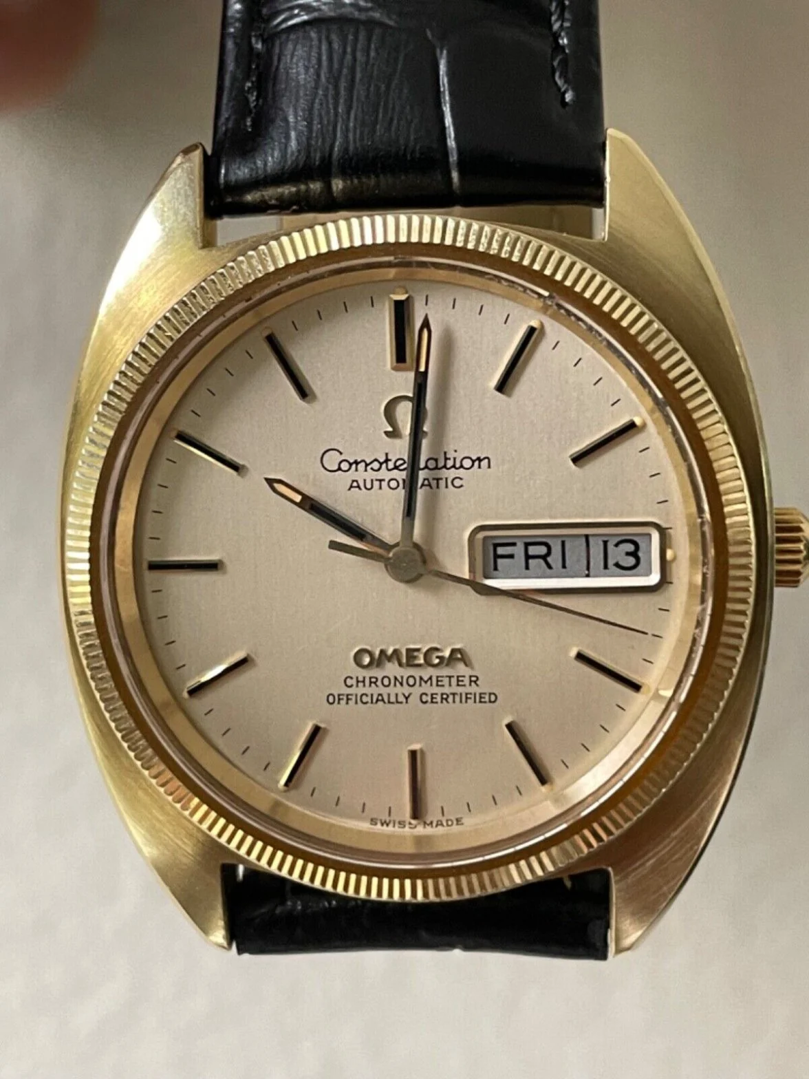 Quite an exceptionally nice Constellation 168.0057 Cal 1021 Day-Date chronometer in gold-cap going no reserve