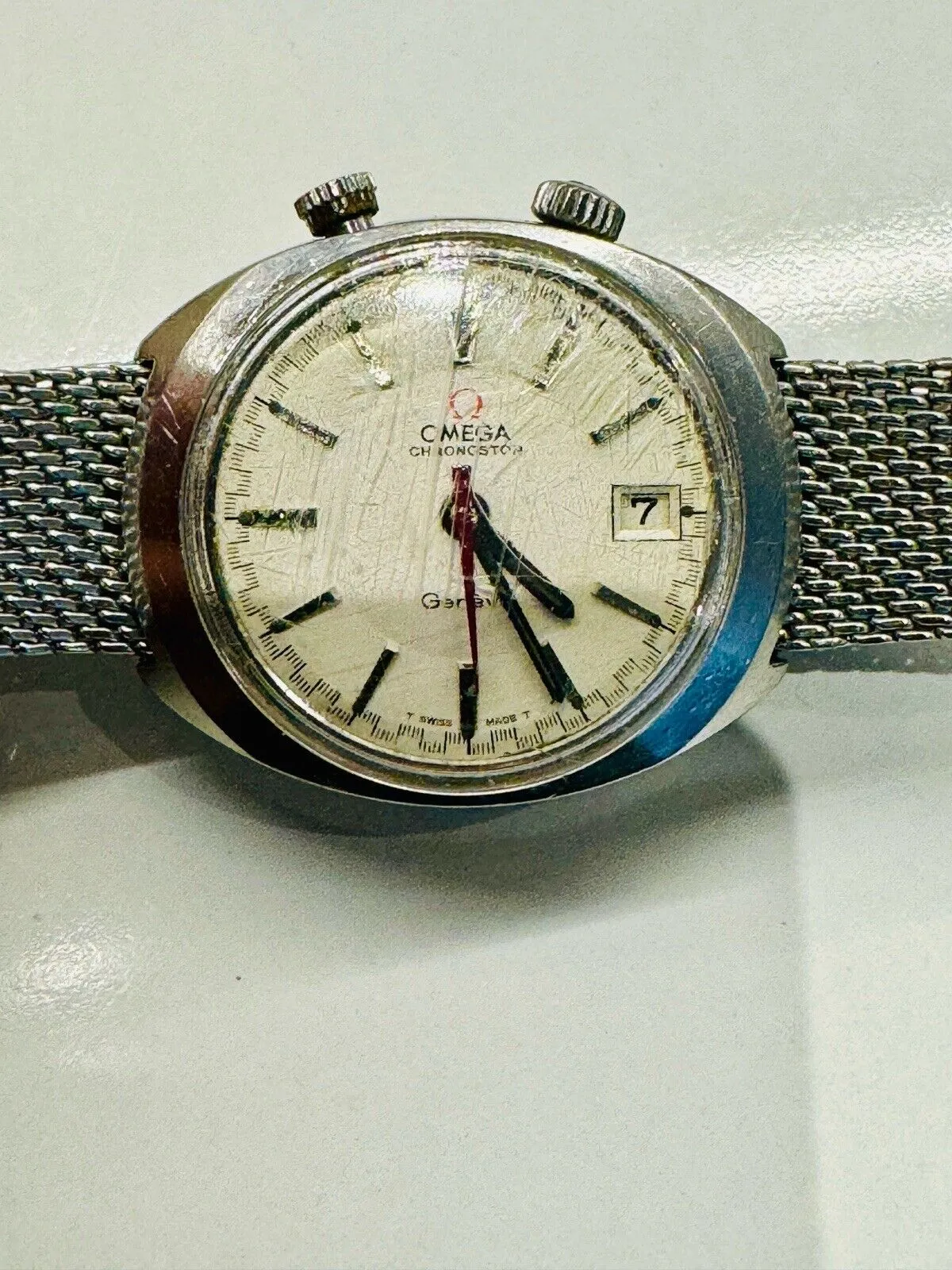 Vintage Omega Chronostop Cal 920 white dial driver’s edition, quite an uncommon variant with a trashed crystal but should clean up quite well after a service, going no reserve in 10 hours, currently at $292